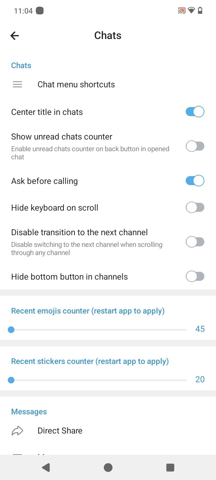 Special preferences for folders, chats, camera, security...