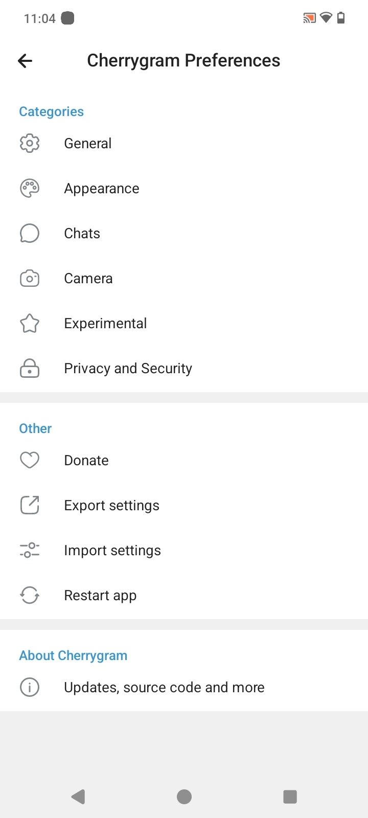 Before you download Cherrygram Android for free, it's important to note that this is an unofficial fork of the original Telegram app for Android, with all that that entails. Its operation is exactly the same as Telegram's, with the only difference being that it includes a special section in the settings menu from which you can access the MOD's exclusive preferences.