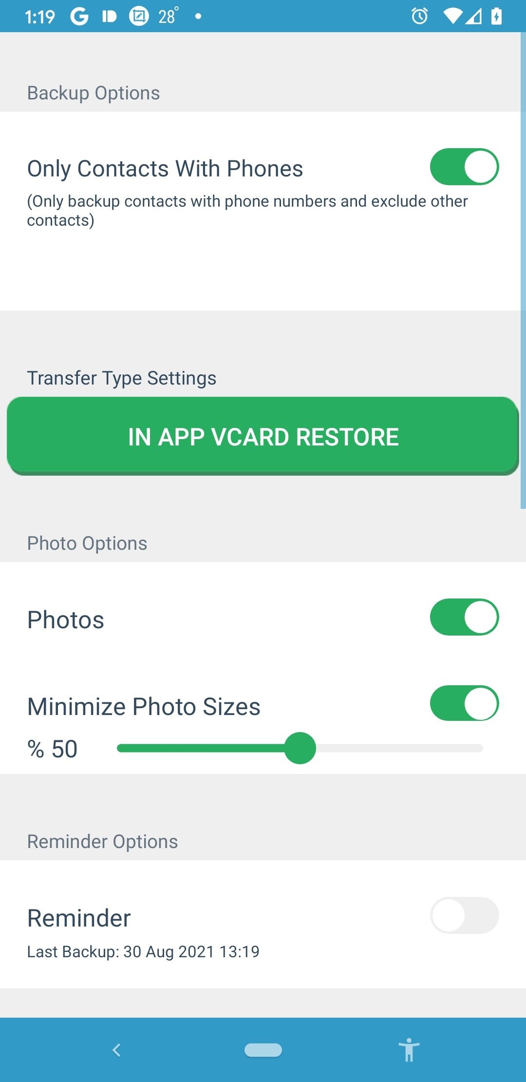 Make a backup and restore all your contacts on your phone with a single screen tap.