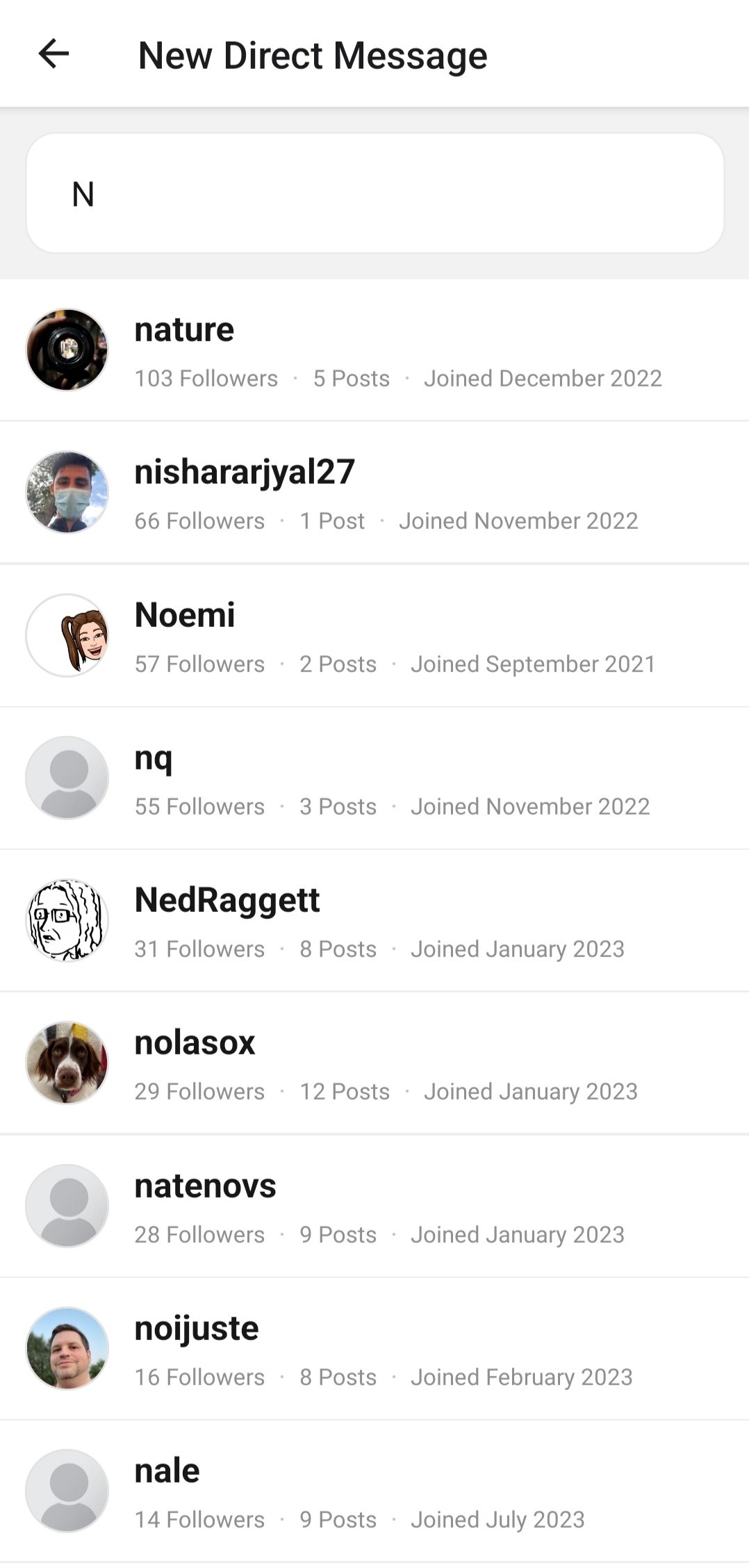 It is possible to send direct messages to any registered user, with some care when sending sensitive data, as the application reminds us.