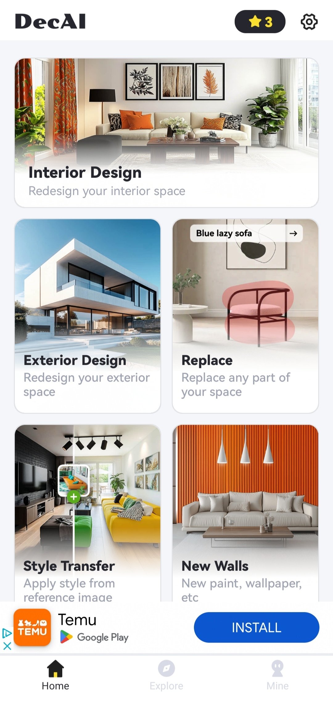 If you are looking for a tool that will help you redesign the exterior or interior of your home, DecAI APK is your solution. Equipped with artificial intelligence, it is capable of visually transforming spaces, whatever they may be.