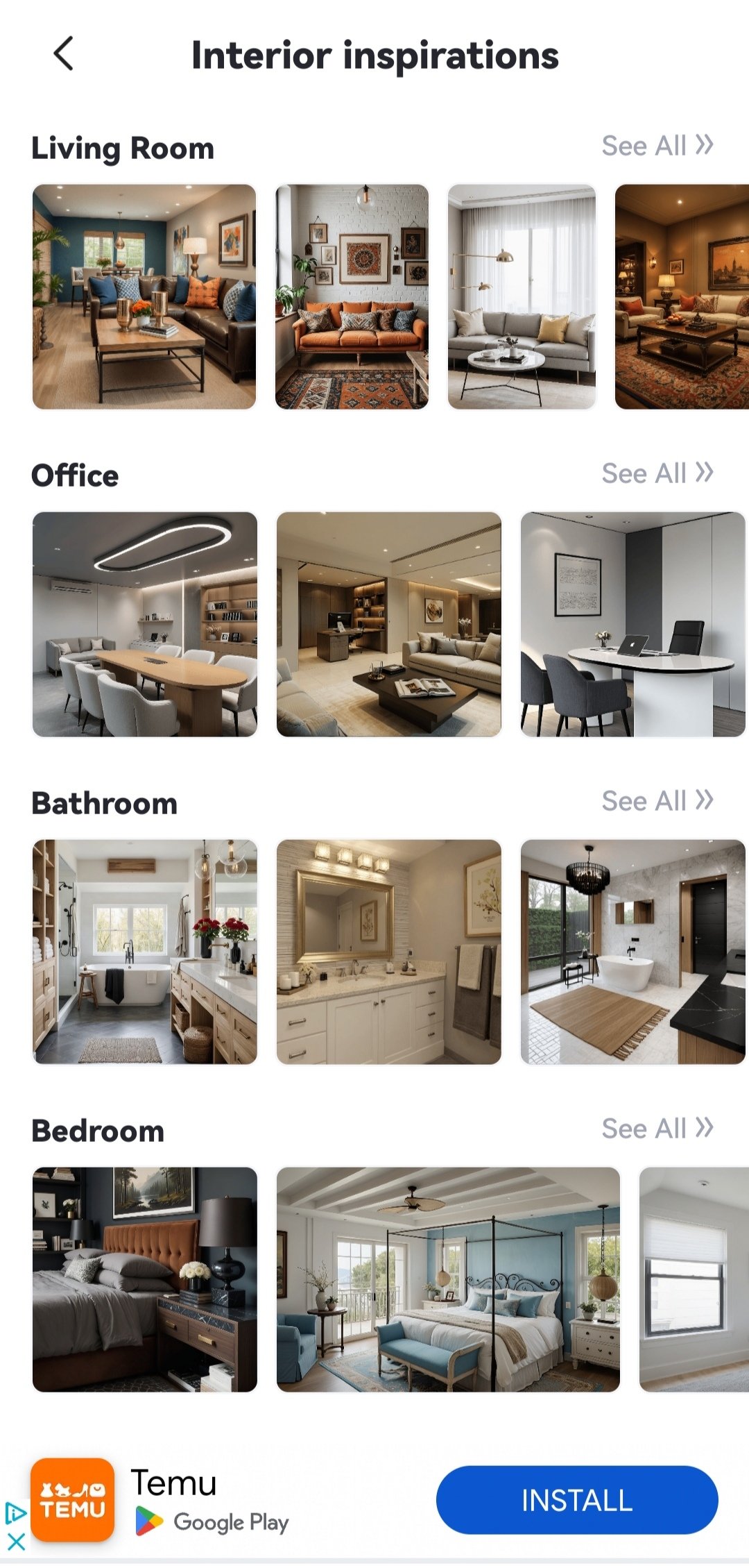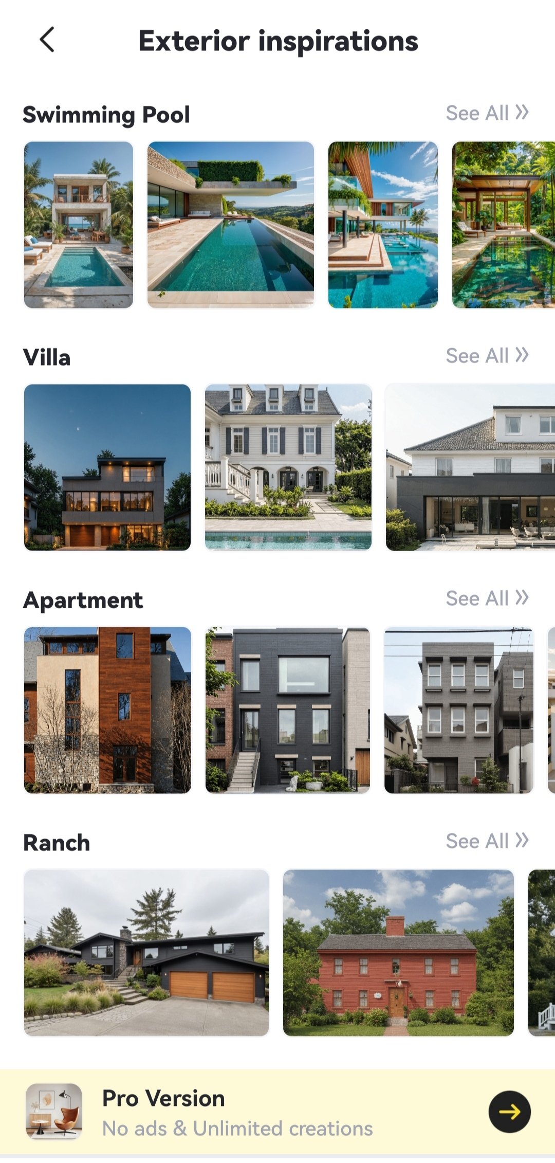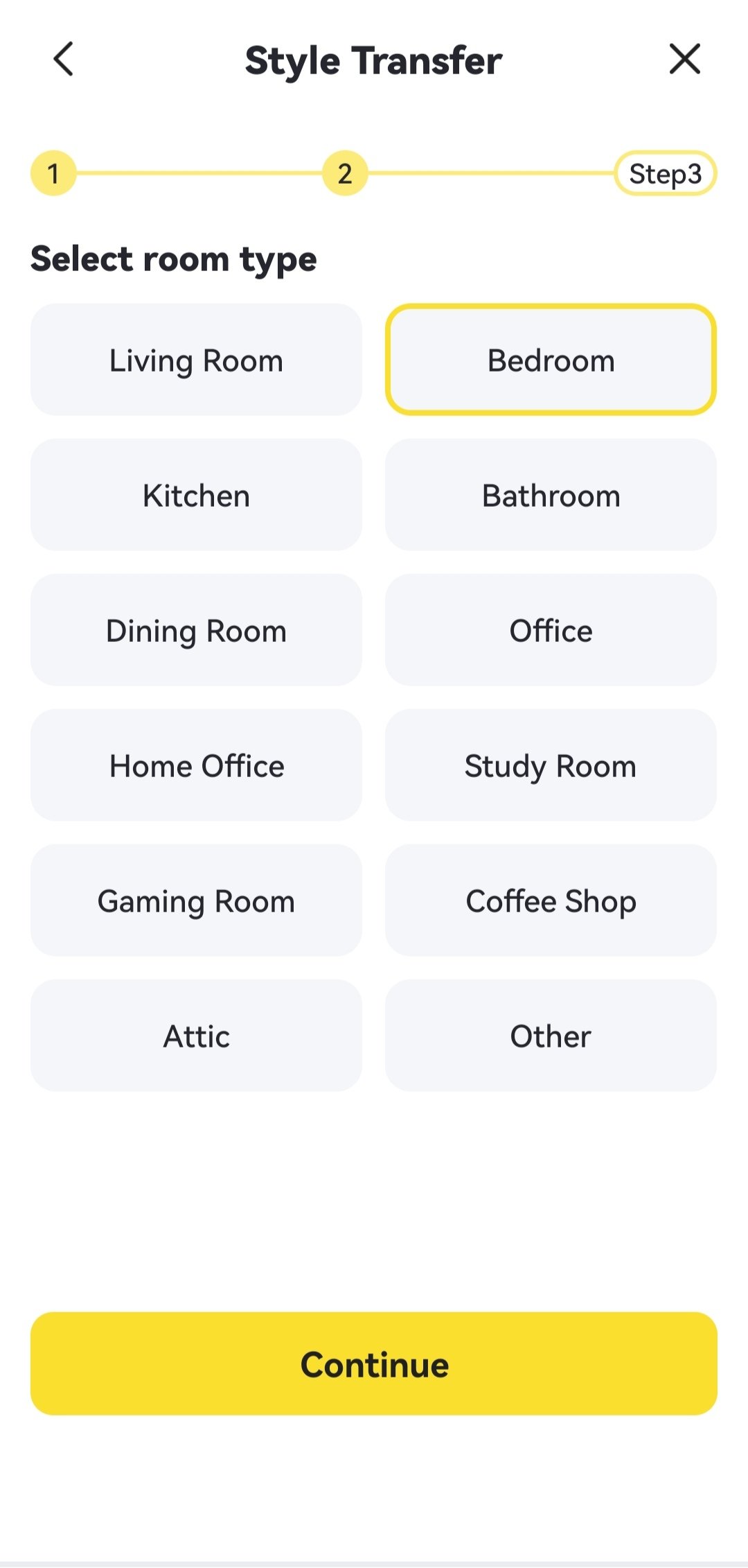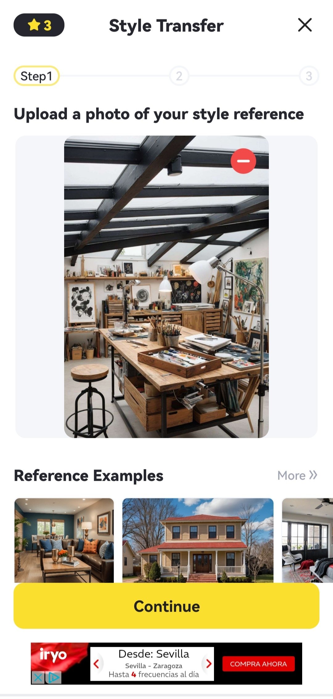 An alternative is the style transfer with a reference photograph that you select wih the one you upload. All options are organized by type of room, which can be indoor:
