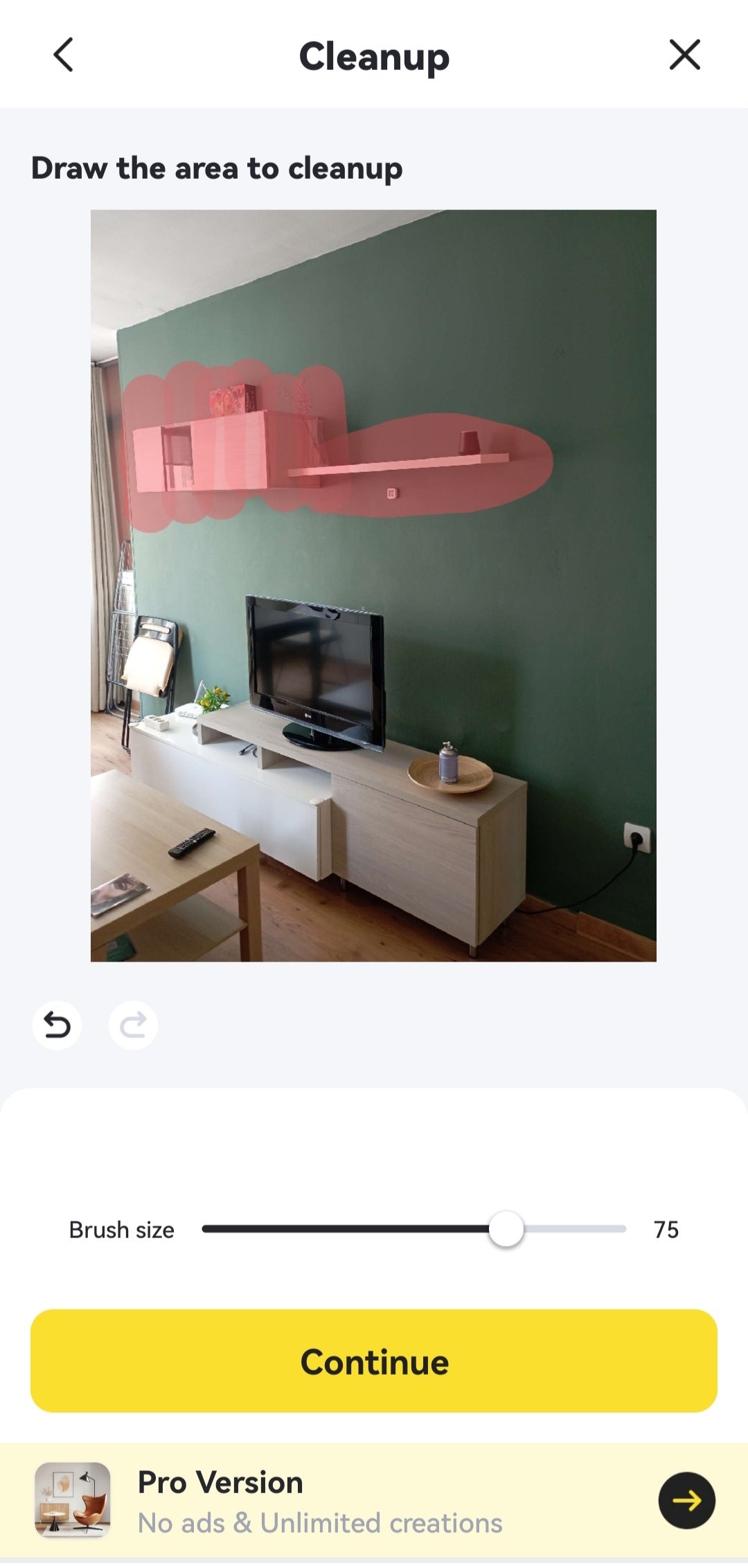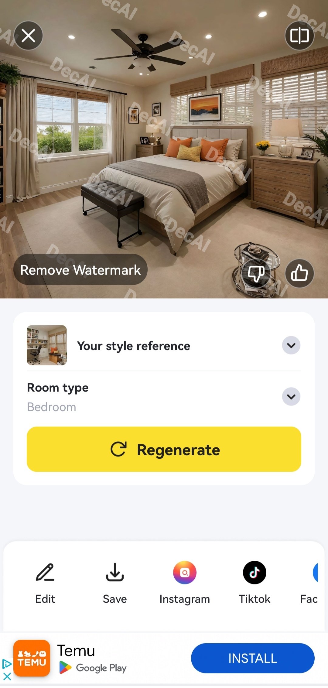 Once we get the redesign, we can compare it with the initial one, save it to our gallery and share on social networks, using the buttons that appear.