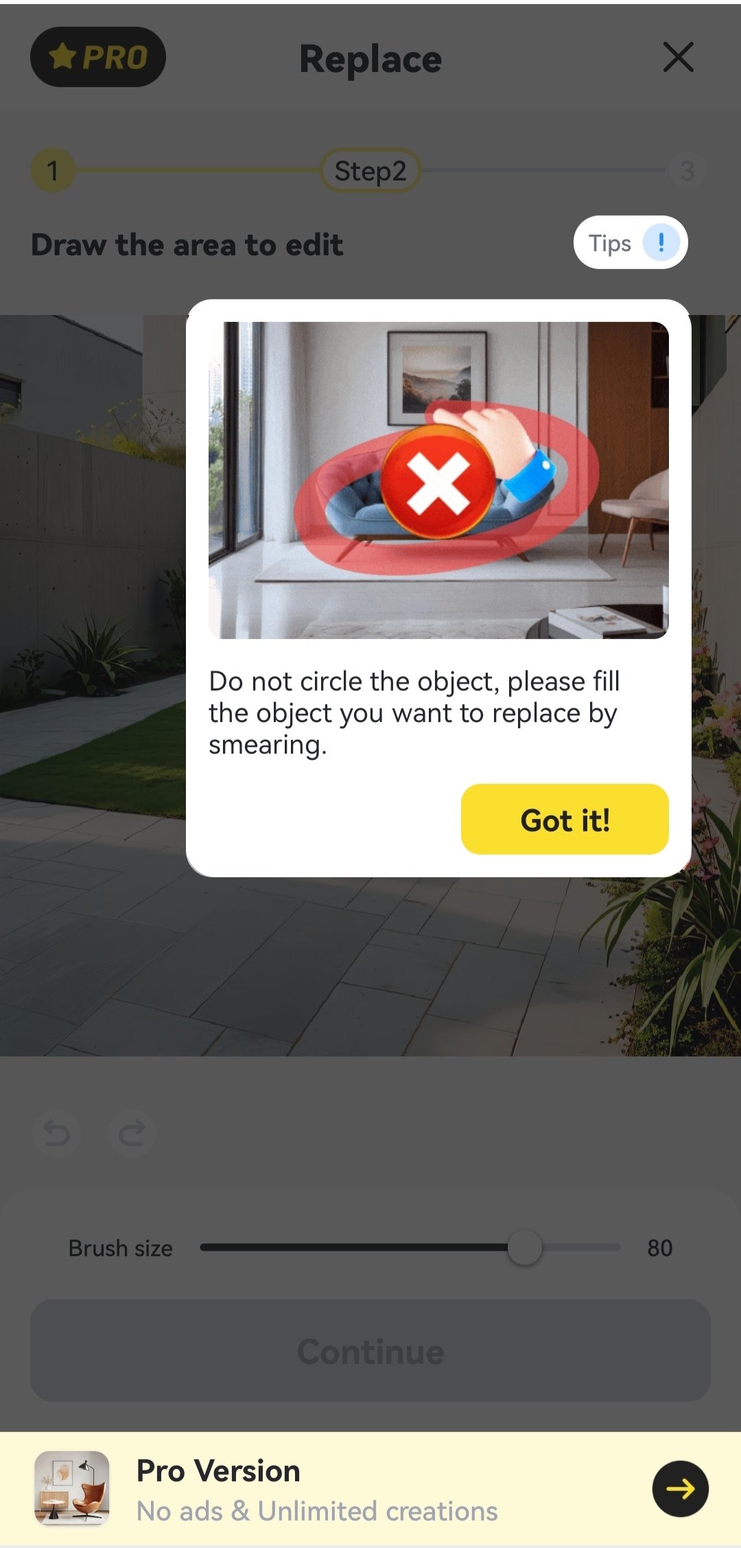 You can also delete objects directly if you plan to remove them to see how the space would look without them, or replace them with different ones you can specify.