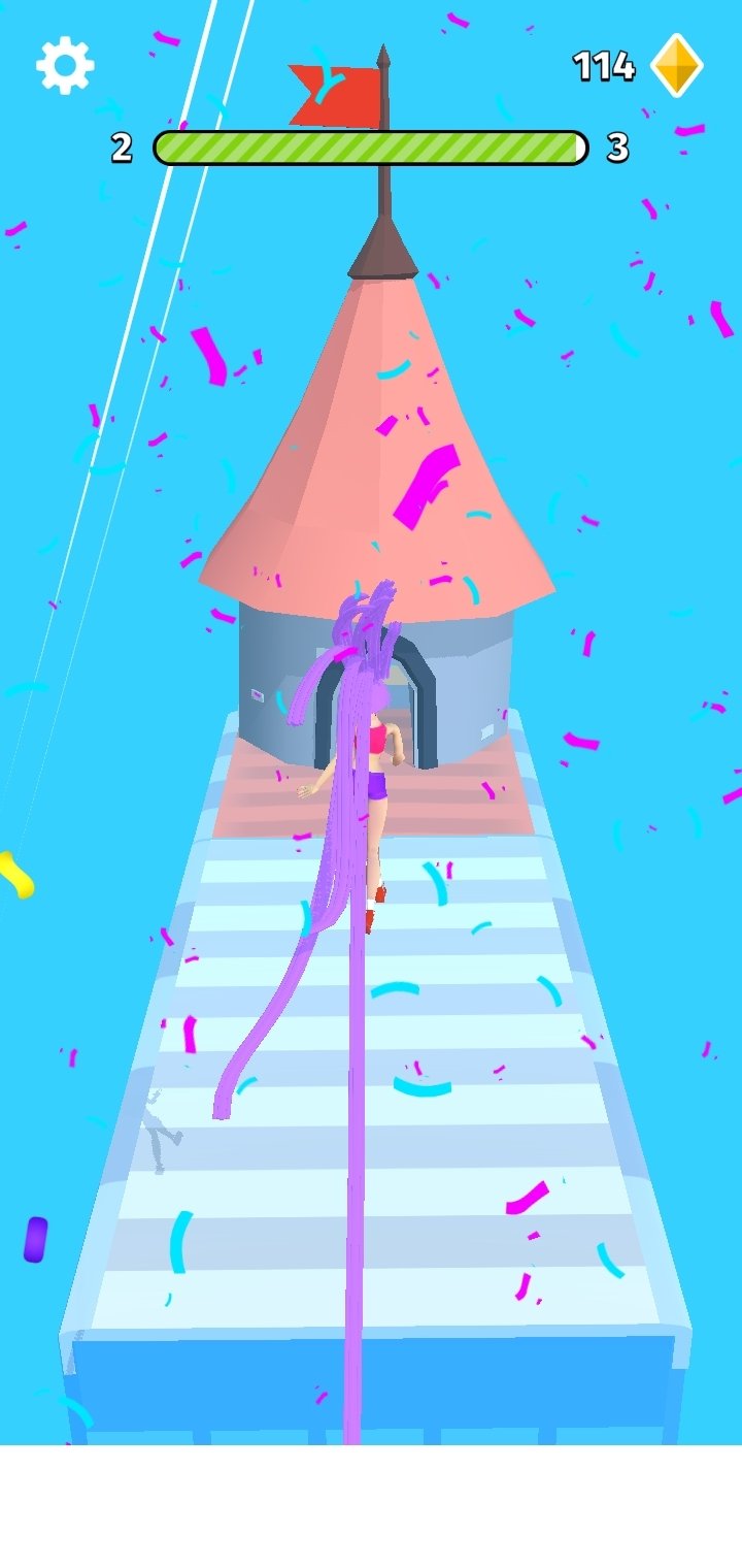 Hair Rush is a crazy obstacle racing game in which we accompany a girl to a tower where she will throw her hair at her beloved, Rapunzel-style. The goal is to reach the finish line with the longest hair possible.