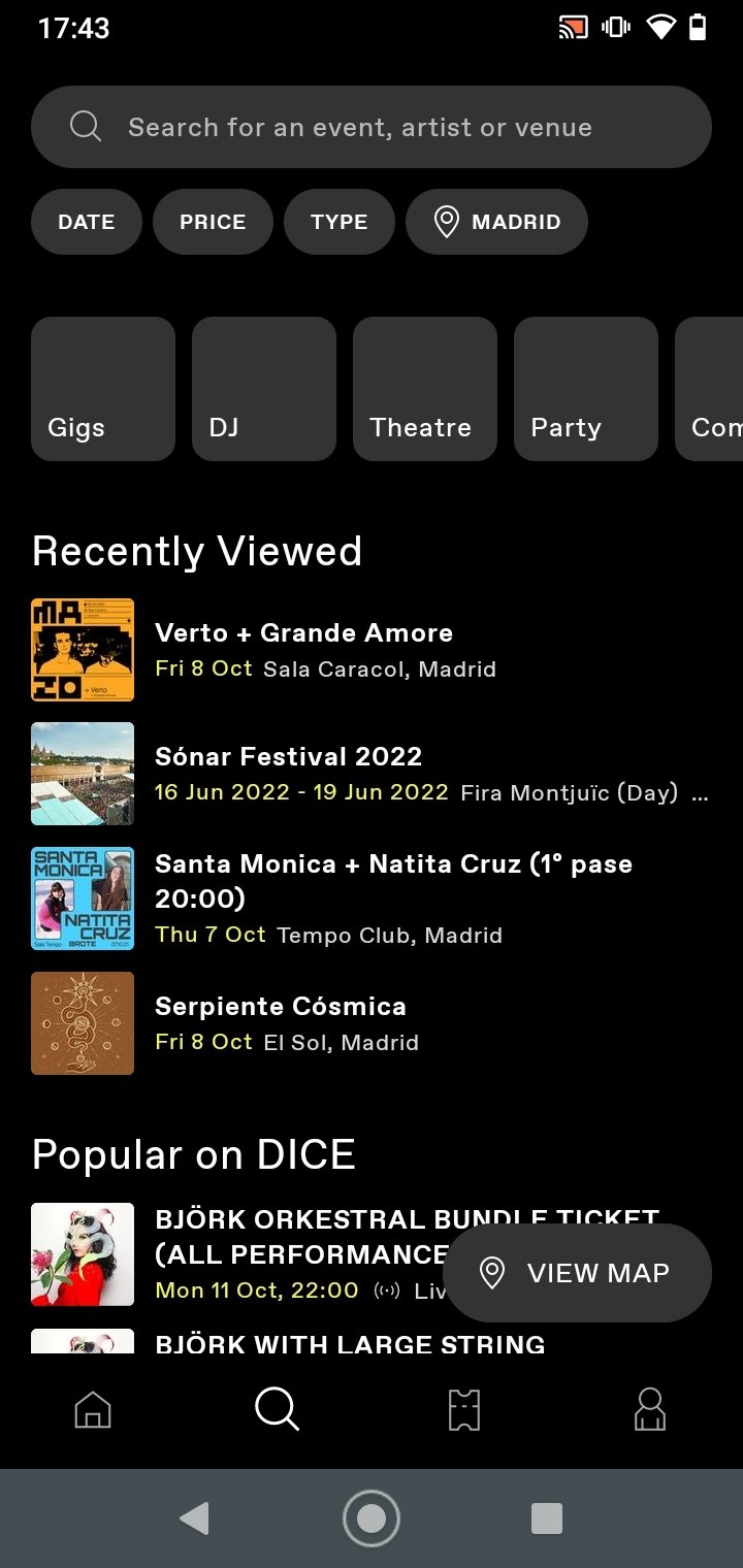 DICE is a music platform that lets users discover concerts and buy tickets easily. With this platform, you can find out the next shows and musical events in your city and the next concert of your favorite artists. And the best thing is that you can buy tickets without leaving the platform.