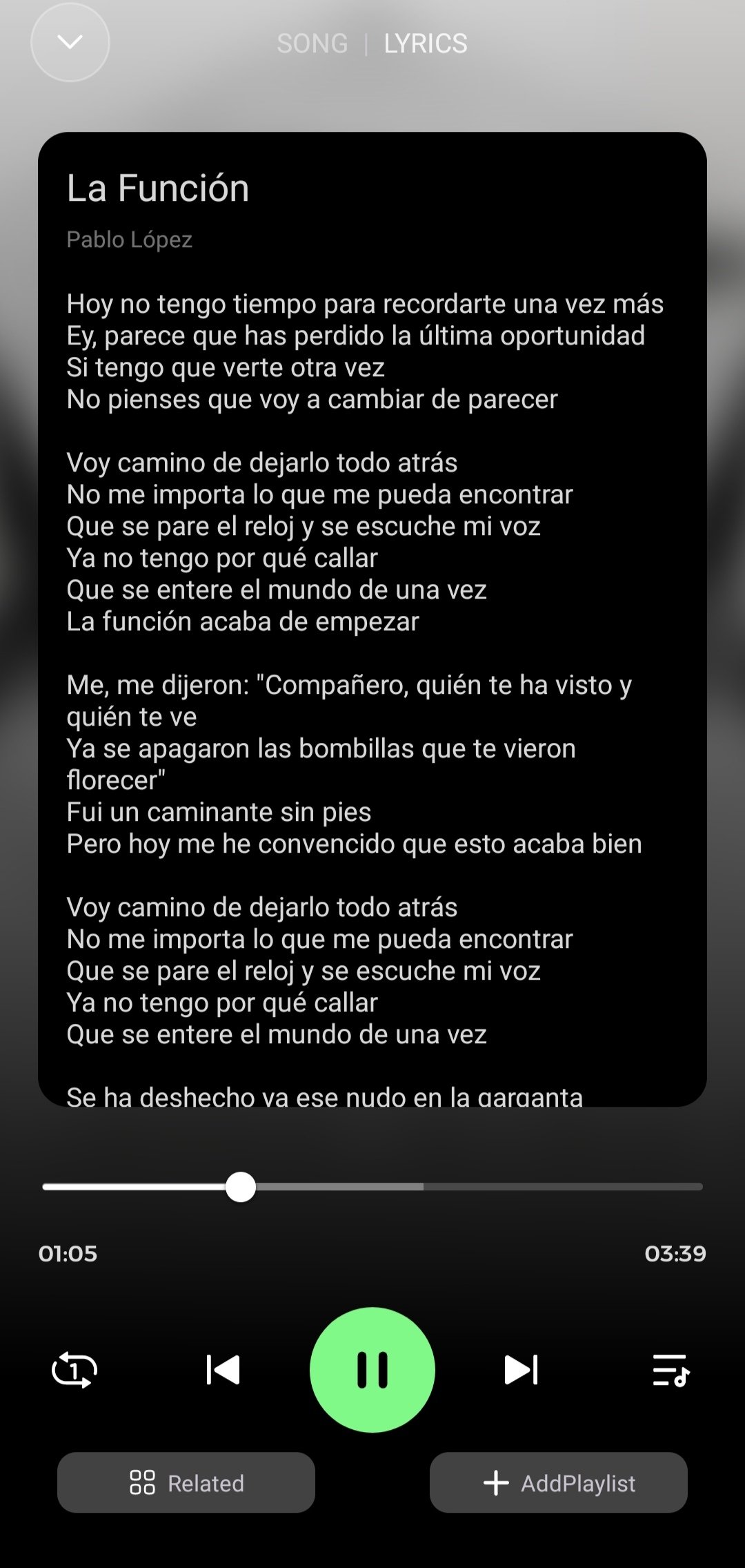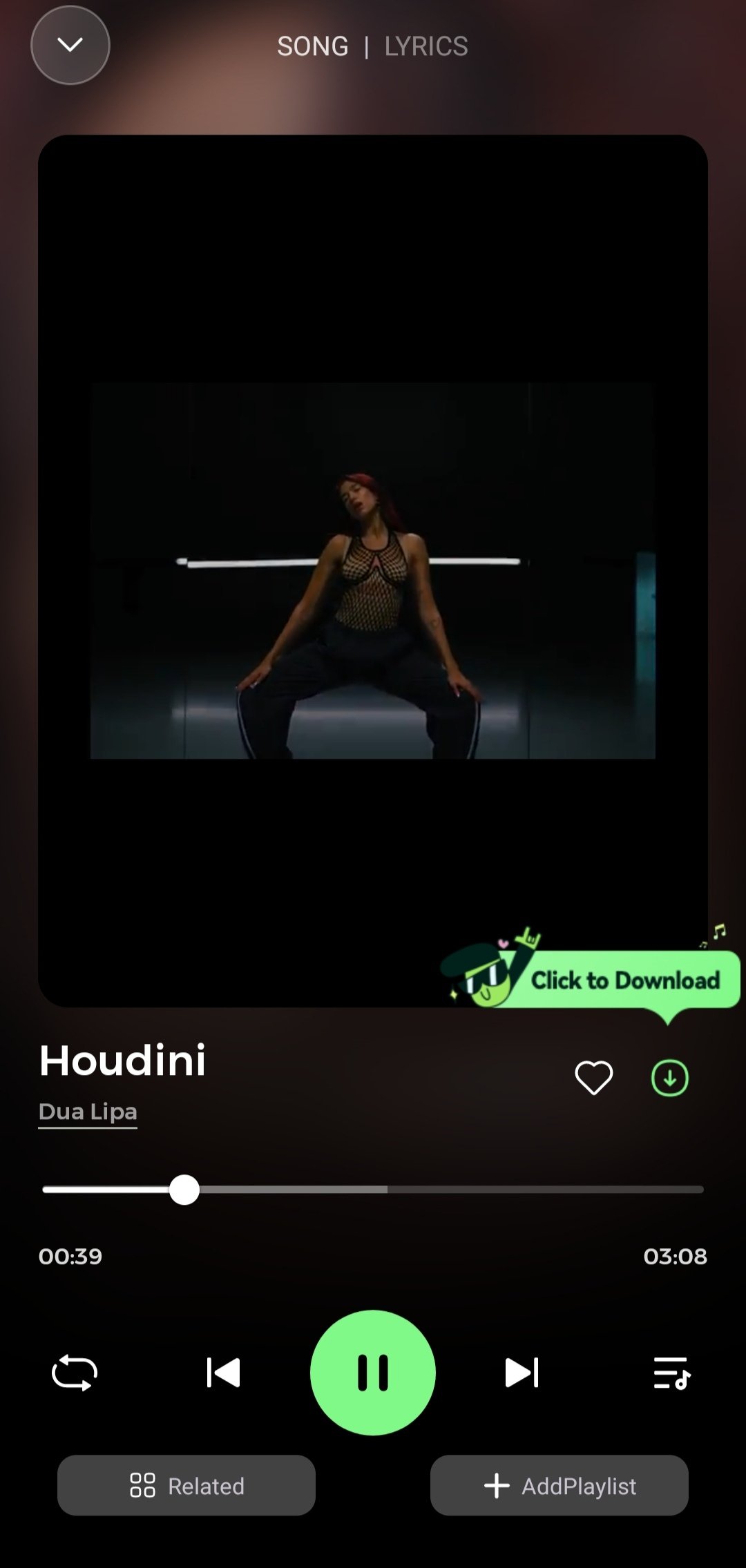 When we go to each artist's profile, we will view a short intro, some of their hit songs, albums, singles, posted videos, etc. Its basic controls enable us to effortlessly play songs in normal mode or in lyrics mode.