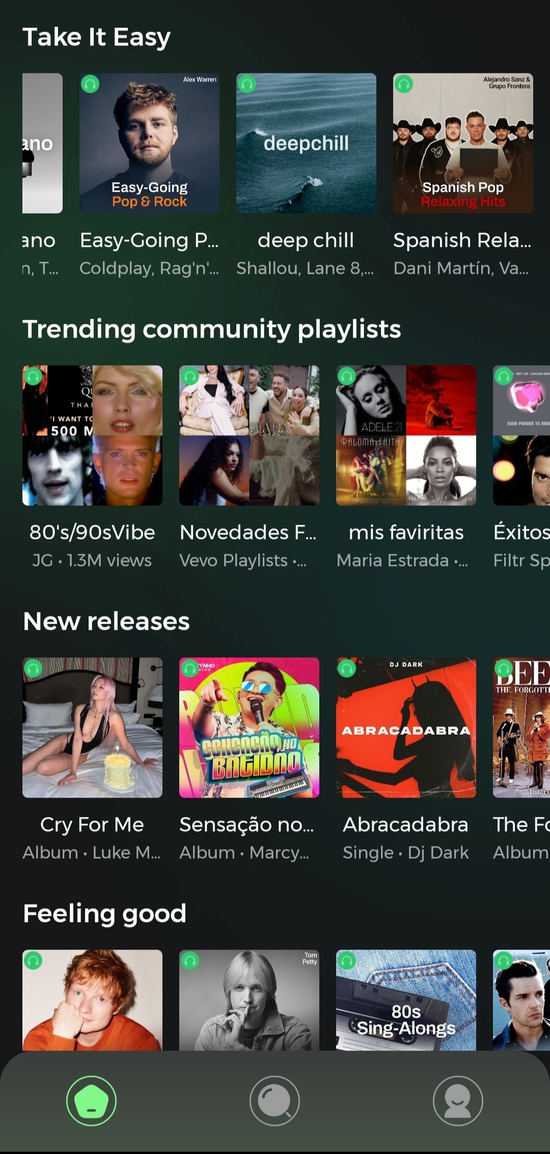An integrated search engine helps us to directly locate the track we want to play. Or to explore options within a specific style. On its home interface, we also find all kinds of sections, among which we highlight the following: