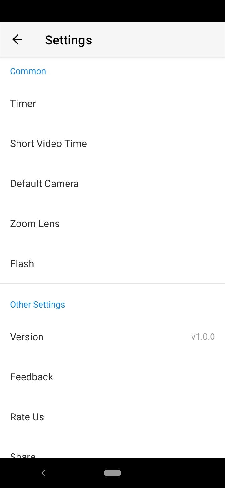 This camera has four sections: video, short video, photo, and square photo. In addition, from the settings section you can customise functions such as the timer, photo and video quality or the default camera.