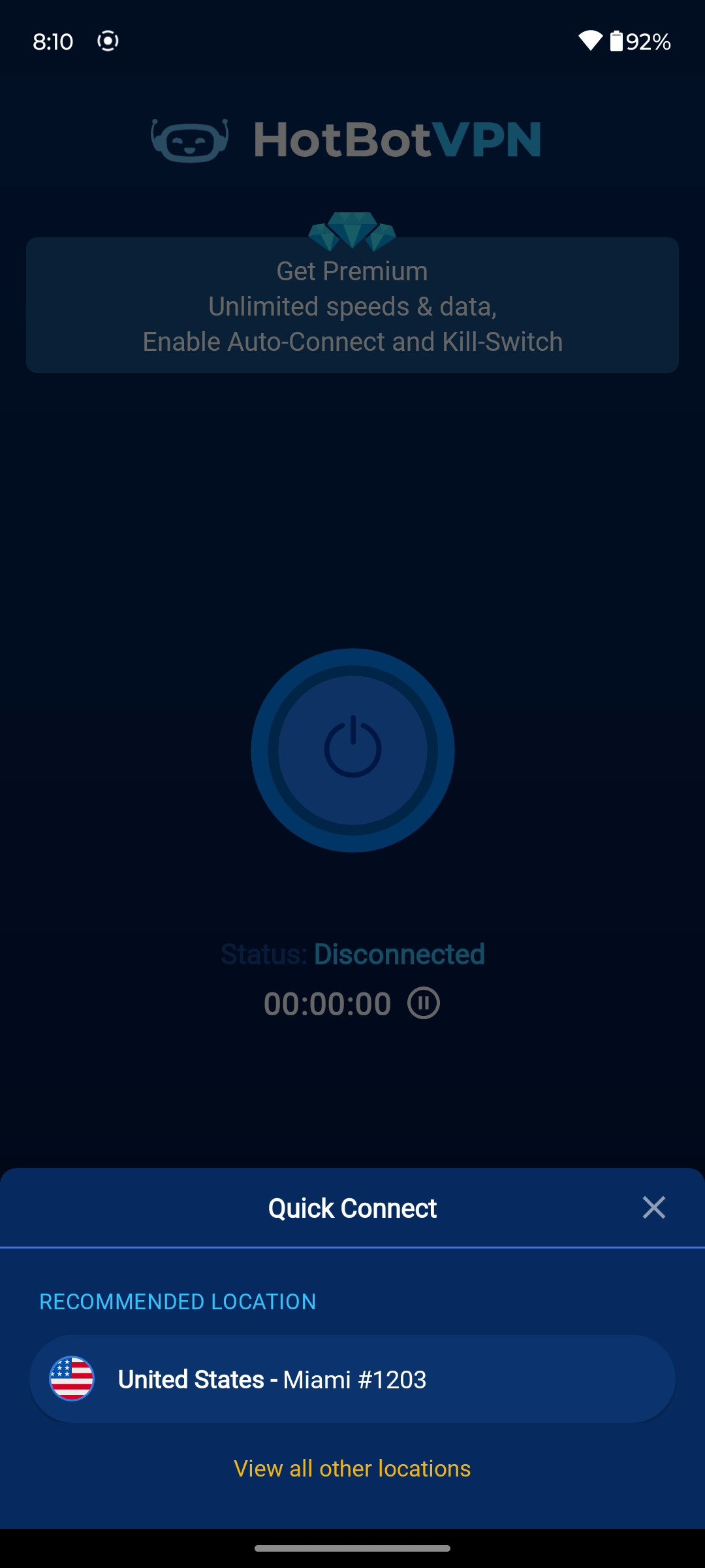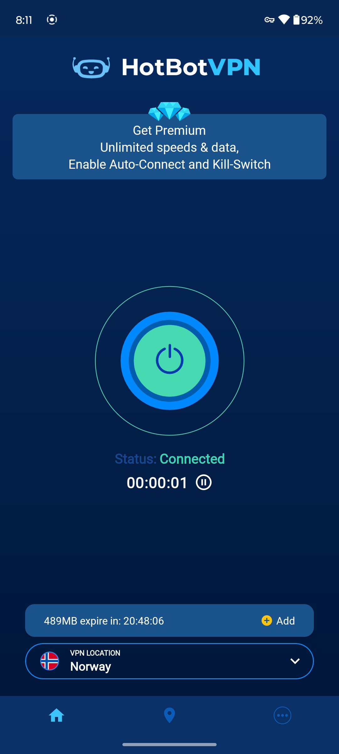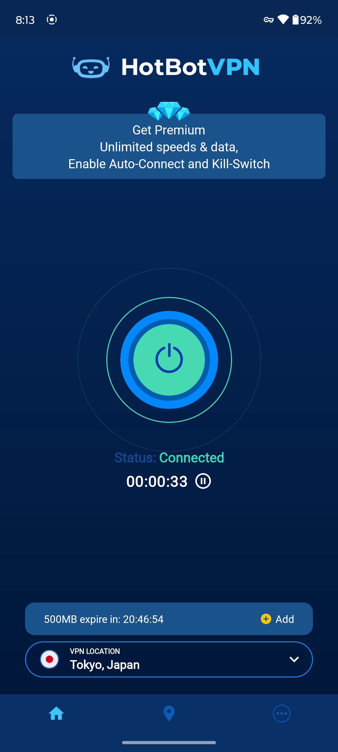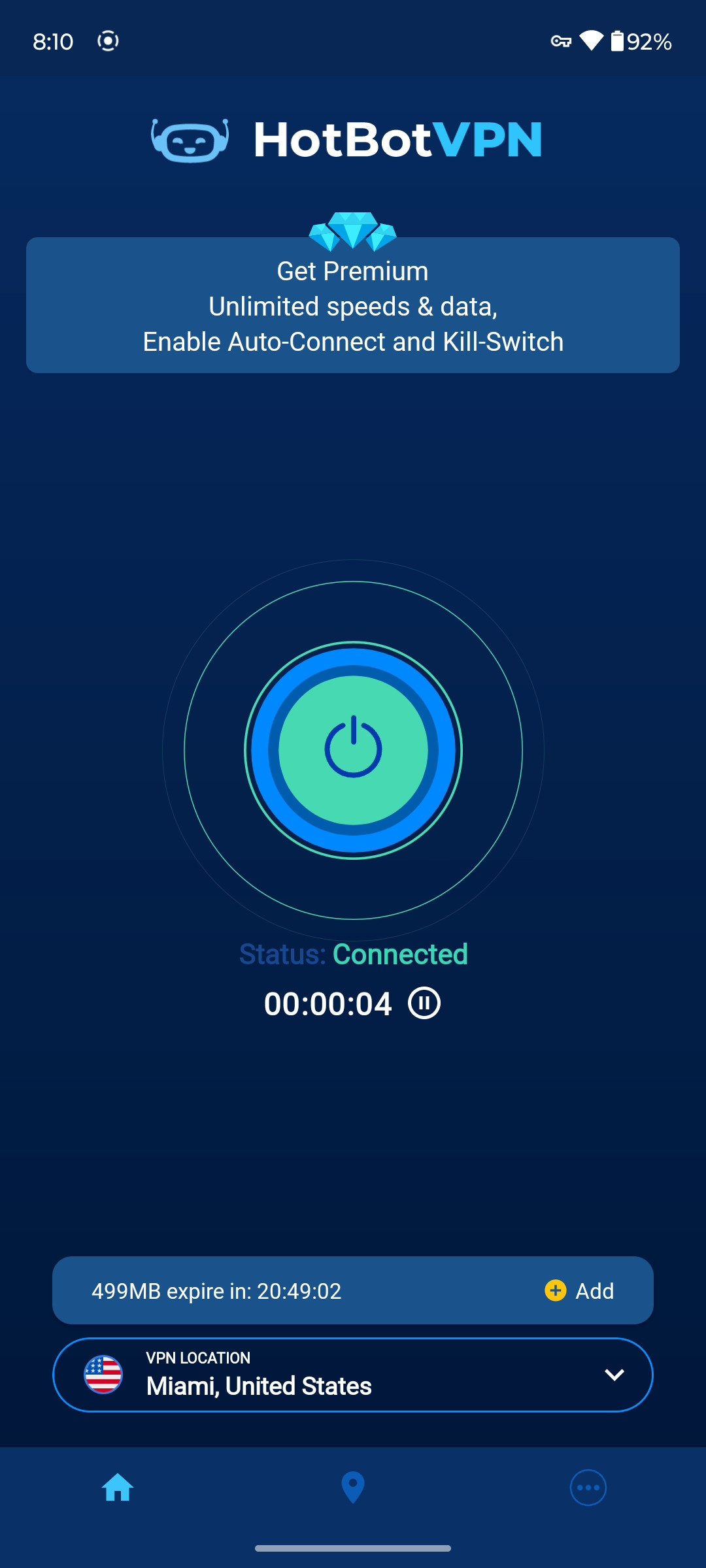 Despite its many benefits, and that you can download HotBot VPN Android for free. In its trial version it only has 500mb per day, which feels very limited but can solve an emergency. You need to buy the premium version to get rid of this limit.