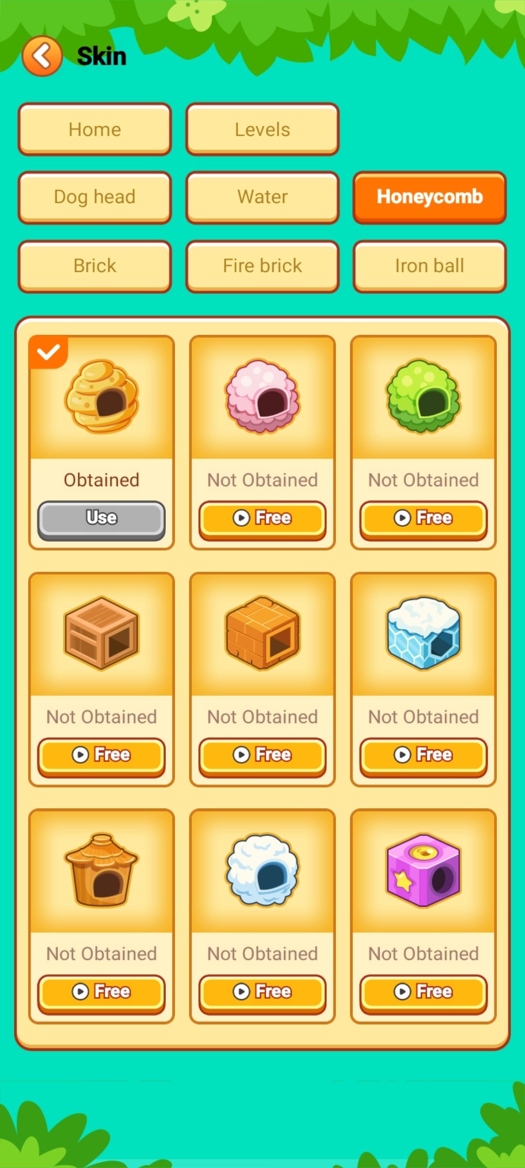 On the other hand, there are a variety of new skins to unlock other dog faces, blocks, balls, background colors, water styles and beehives with advertising.