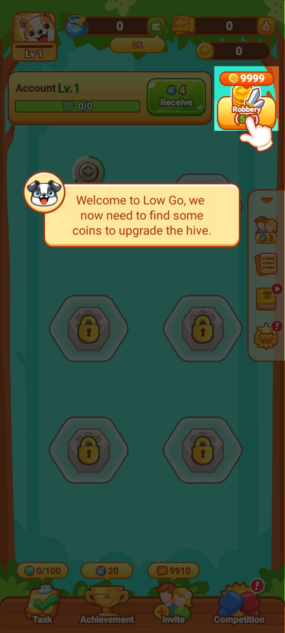 Your goal when you play Low Go is to collect gold both by creating our defenses and by going to other hives with our dogs, preventing them from dying