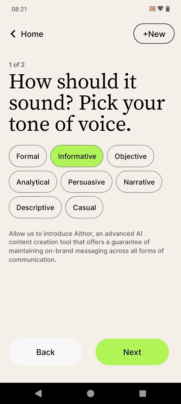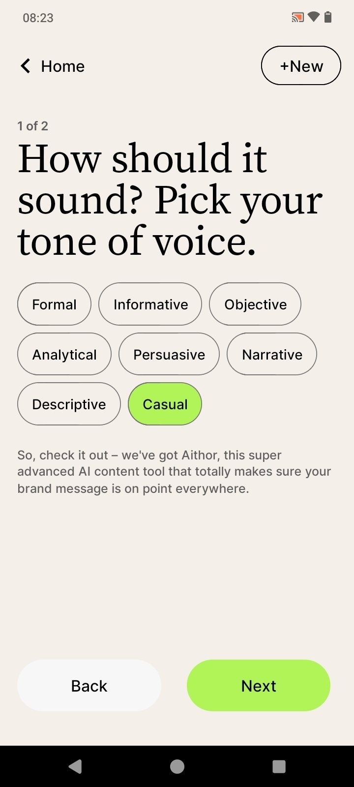 The Aithhor APK app stands out for its ability to generate quality content from a theme provided by the user. In addition, it offers customization options that allow you to adjust the tone and length of the text, ensuring that the final result reflects the author's style and requirements.