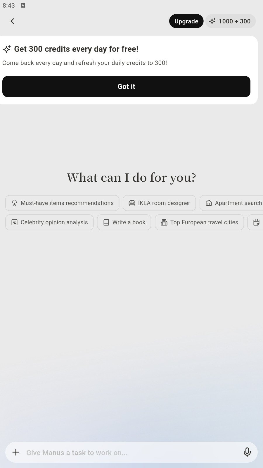 However, although you can download Manus AI for free, its use is limited to a number of daily credits, which may restrict the amount of tasks you can perform.