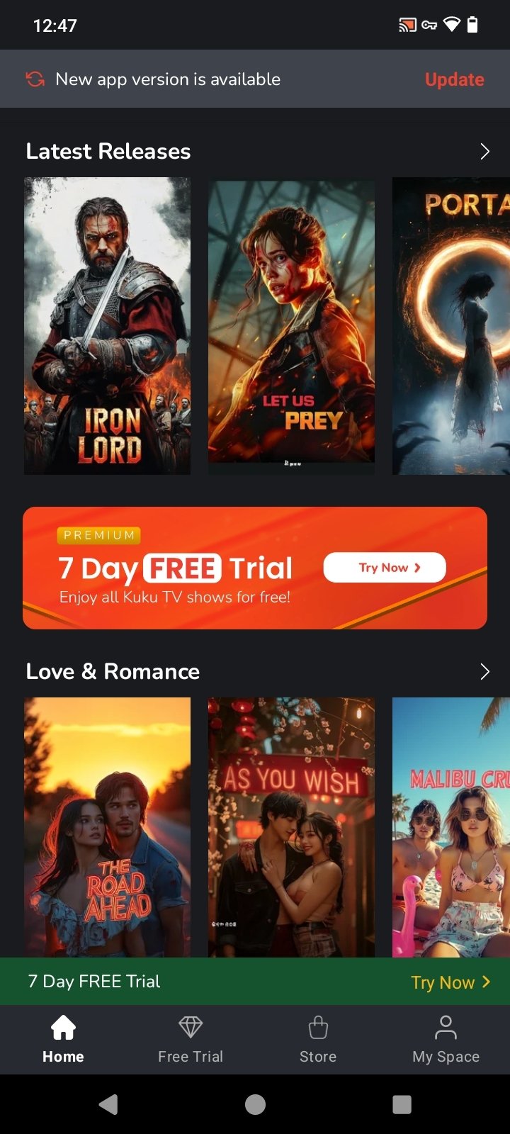 Download Kuku TV Android for free and enjoy a lot of short series completely free. These are original contents made up of very short episodes of only a few minutes in length. The catalog is updated daily, offering us new series ordered by thematic categories.