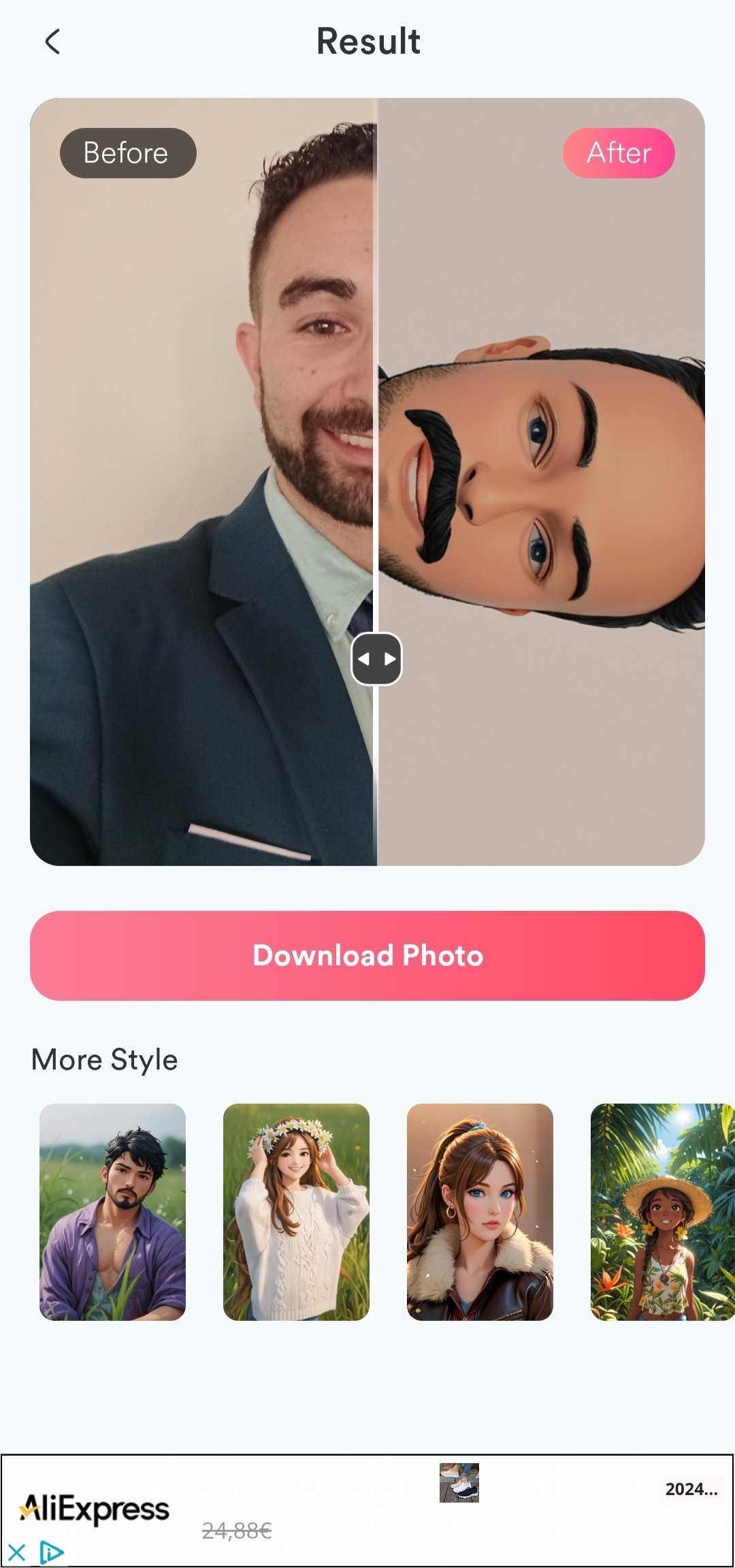 In each one, you can choose one of ten different styles. The one we like the most or suits what we want. Then, we just have to select the image from your gallery so that the artificial intelligence can do the conversion quickly.
