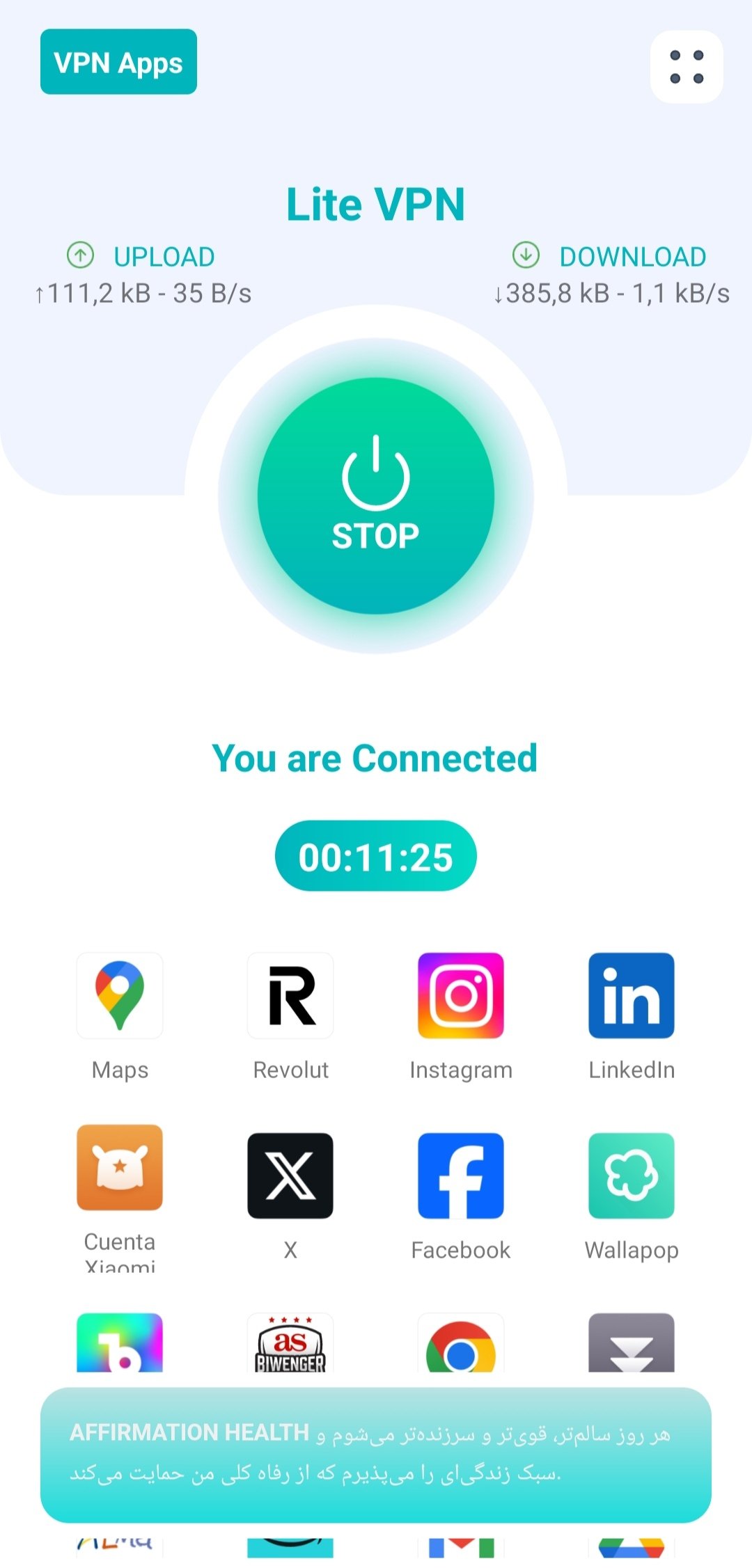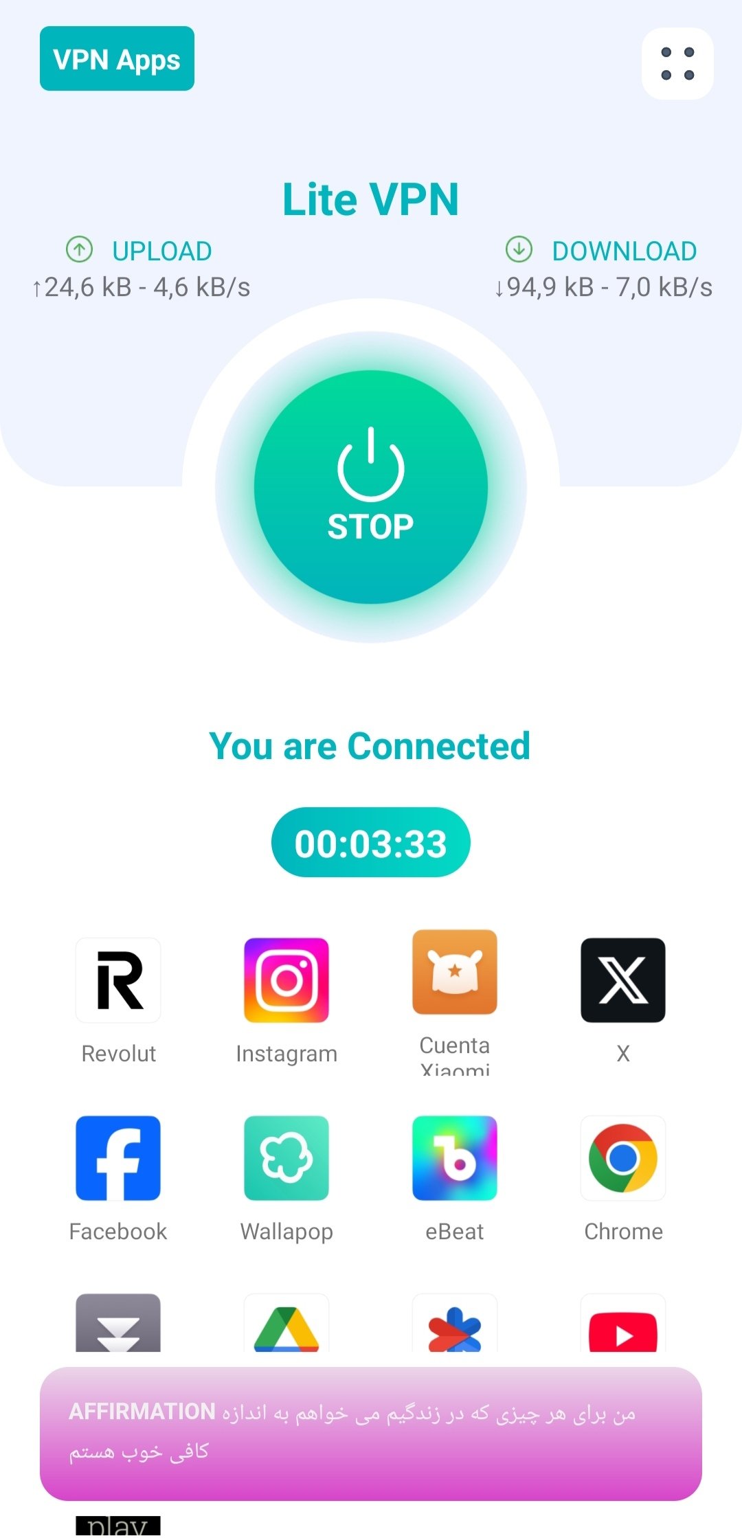 Meanwhile, in Lite VPN APK we find one more handy extra function. It consists of enabling us to manually choose which of our app icons we want to appear at the bottom of the interface. It gives us quick and direct access to them with just one tap.