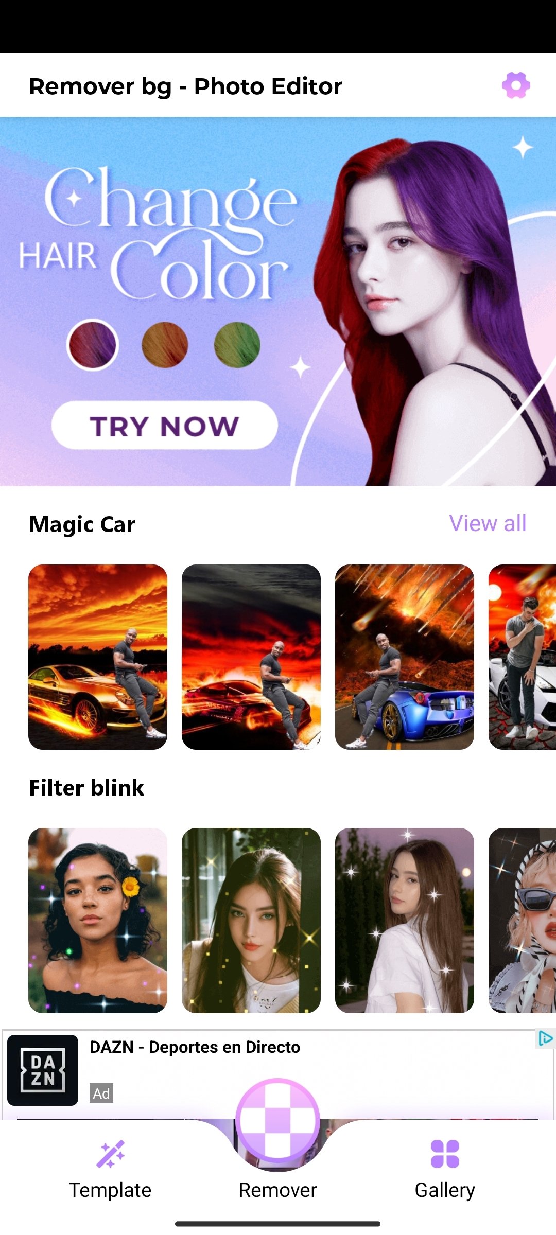 Featuring themed templates, we can use Remover bg to replace the background in an image, modify its sky conditions, change hair color and also edit photos