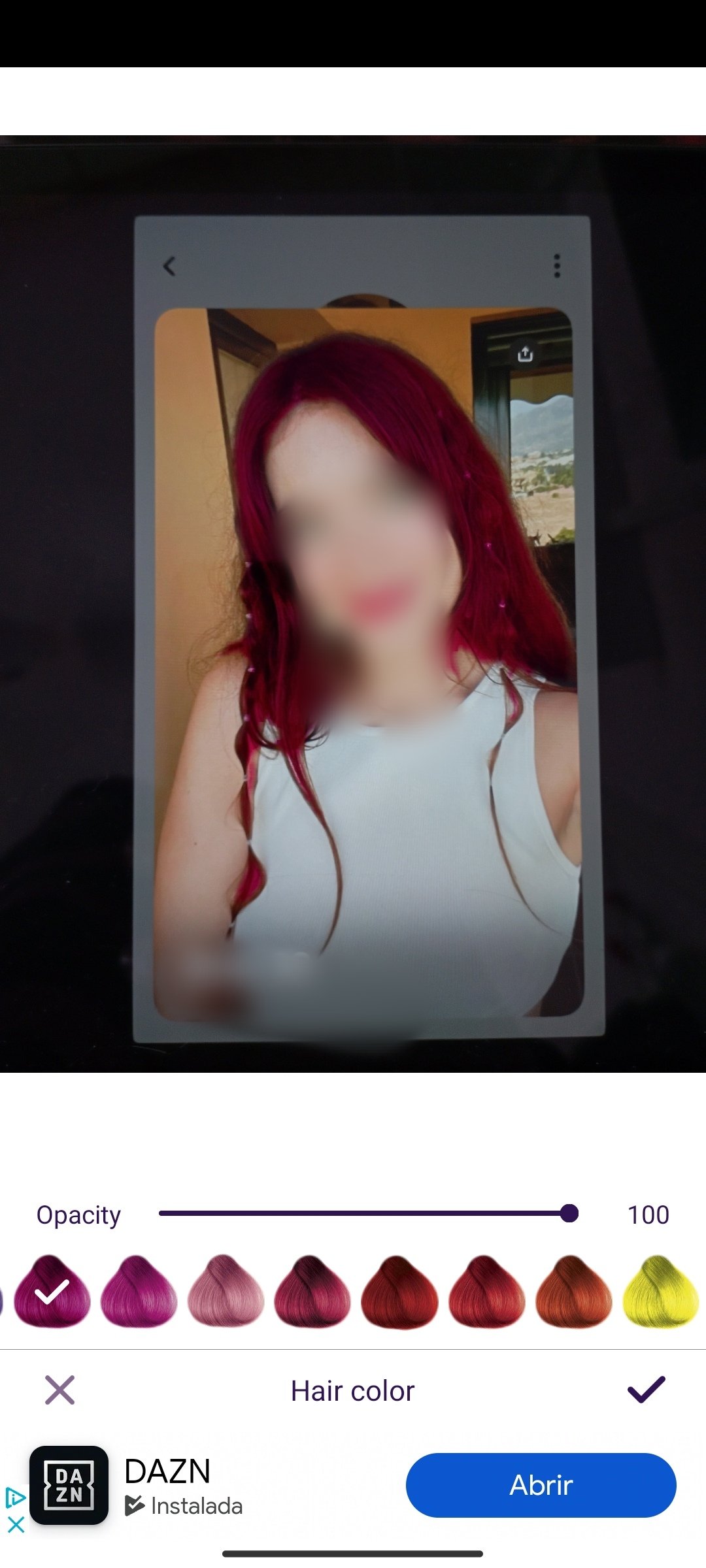 An extra function is that of coloring a person's hair any color we choose. From yellow to gray, passing through green, pink or purple, just to mention a few examples.