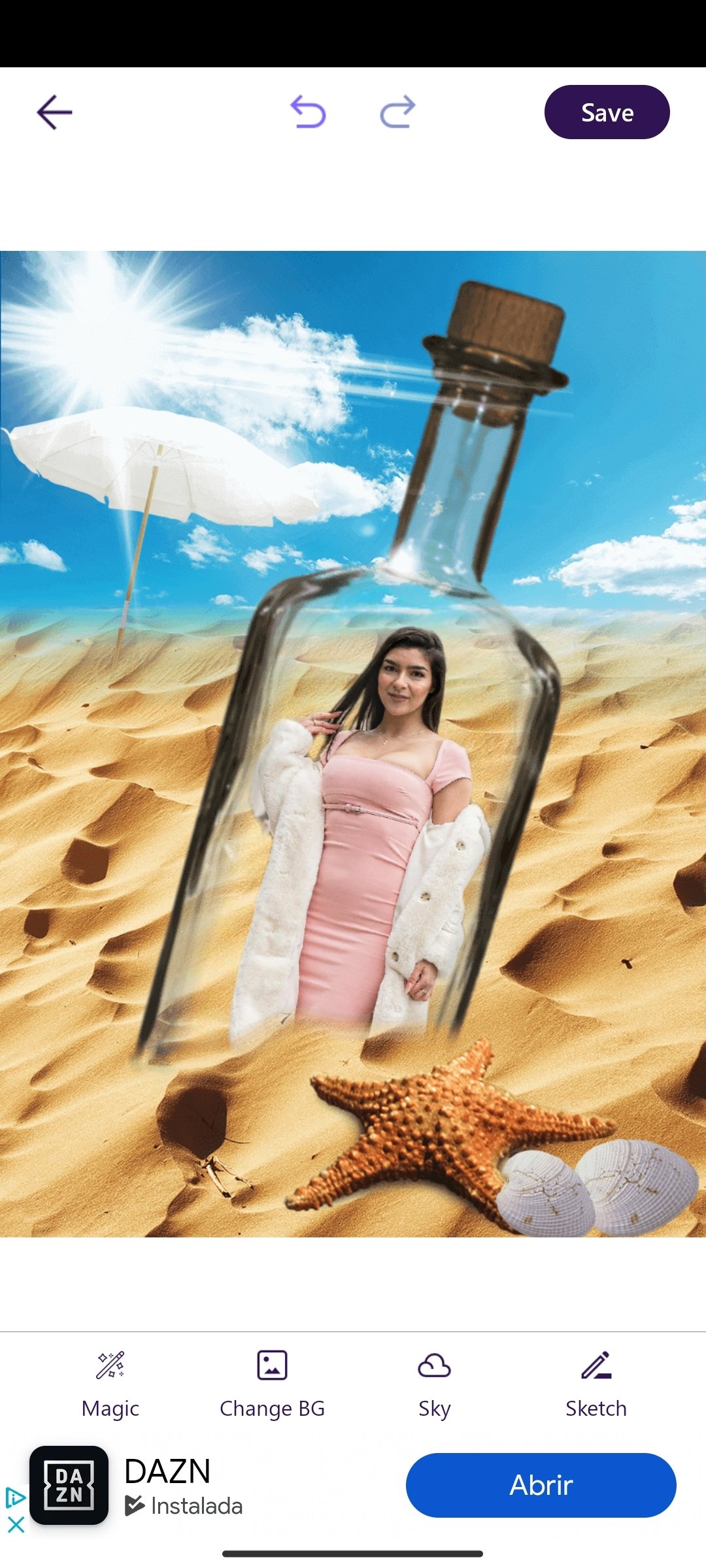 Once editing is completed, we have to tap on the save image button. The image is instantly stored in the device gallery in PNG format and in high resolution.