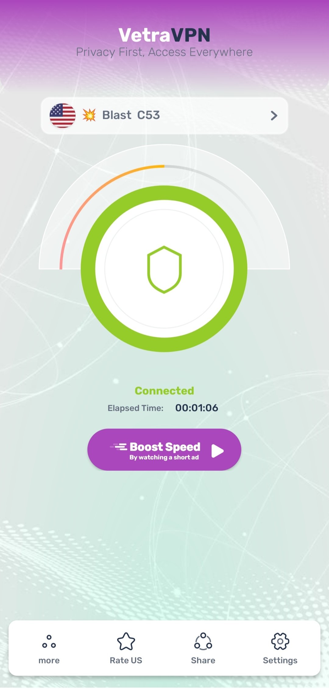Thanks to Vetra VPN, we can browse the internet privately and speedily by connecting to servers located in the United States, and even configure a DNS
