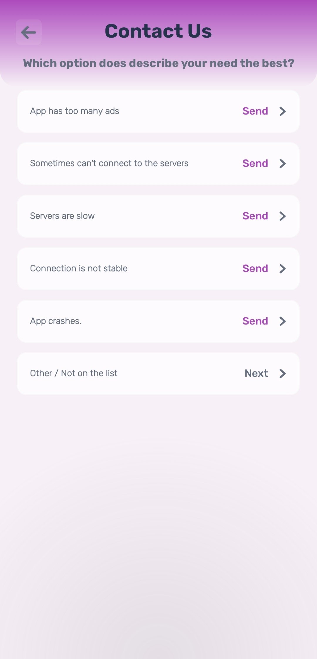 If you encounter any issues after you download Vetra VPN for free and try it out, you can report them. The contact button is very quick and easy to use. Another alternative is to send an email to the developers, describing any issues experienced.
