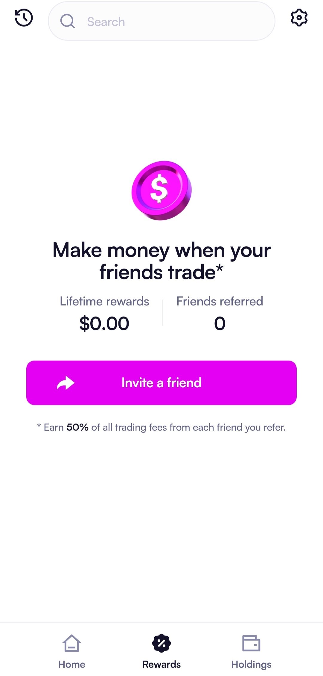 It is possible to earn money by inviting friends to try Moonshot as well. Well, it promises to make a 50% profit from all the trading moves carried out by the recommended person.