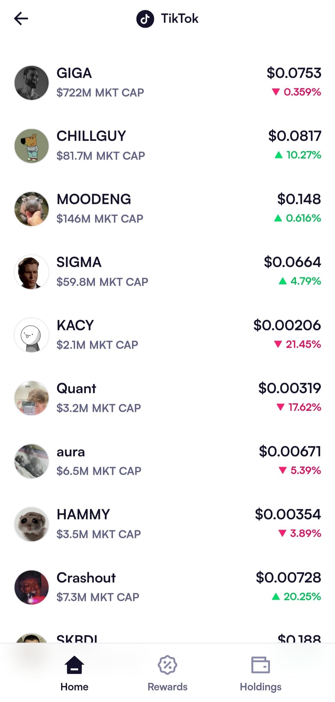 By digging deeper into every memecoin out there that is published, we see its updated main information: