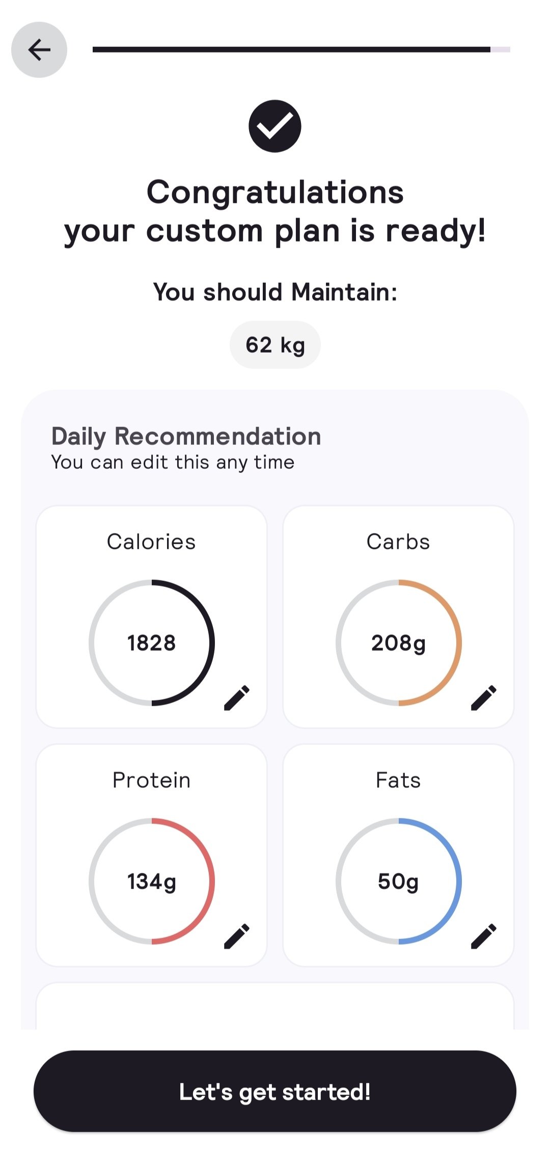 Cal AI Android doesn't seek to be a dietary advice resource, but it does suggest ways for us to maintain our current weight, lower it or increase it. First, we enter our weight, along with height, age and gender. It then automatically generates the nutritional goals that we should be meeting every day. Although we can modify them ourselves.