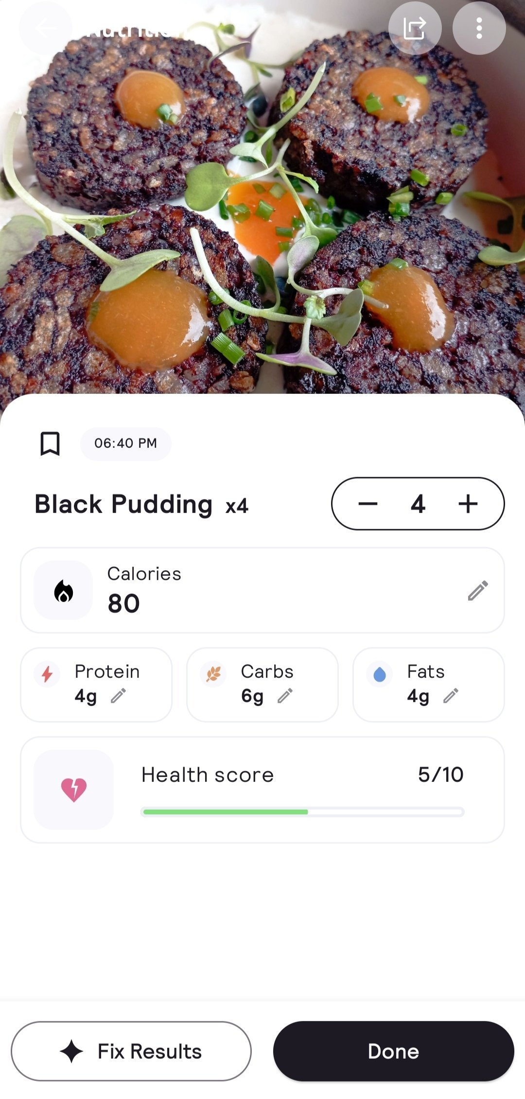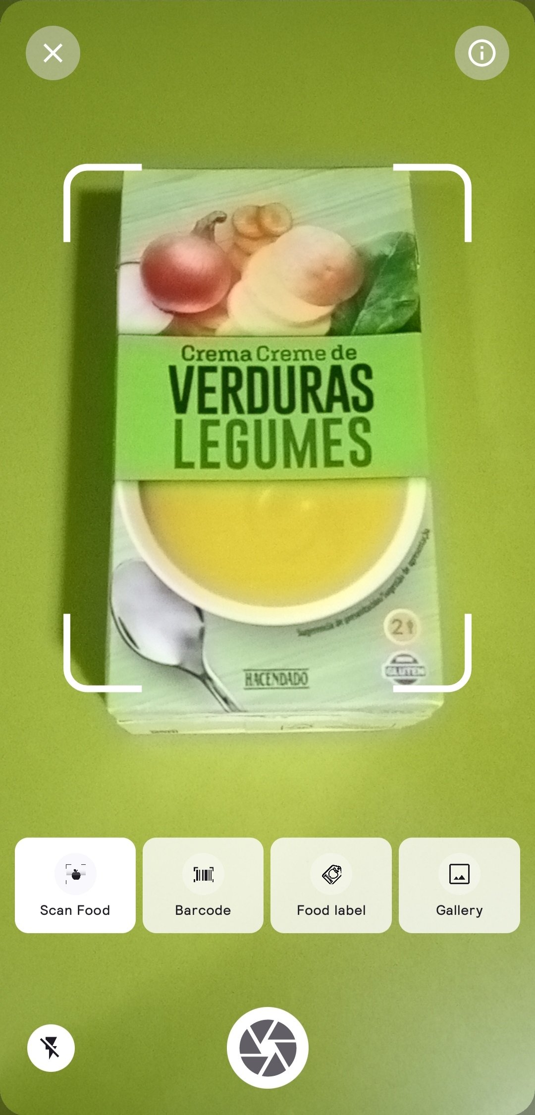 However, it can be inaccurate even when it correctly identifies the food items, depending on what they are. That is why it is possible to add them manually, with their specific values. The other alternatives of scanning the bar code or the label don't work well either.