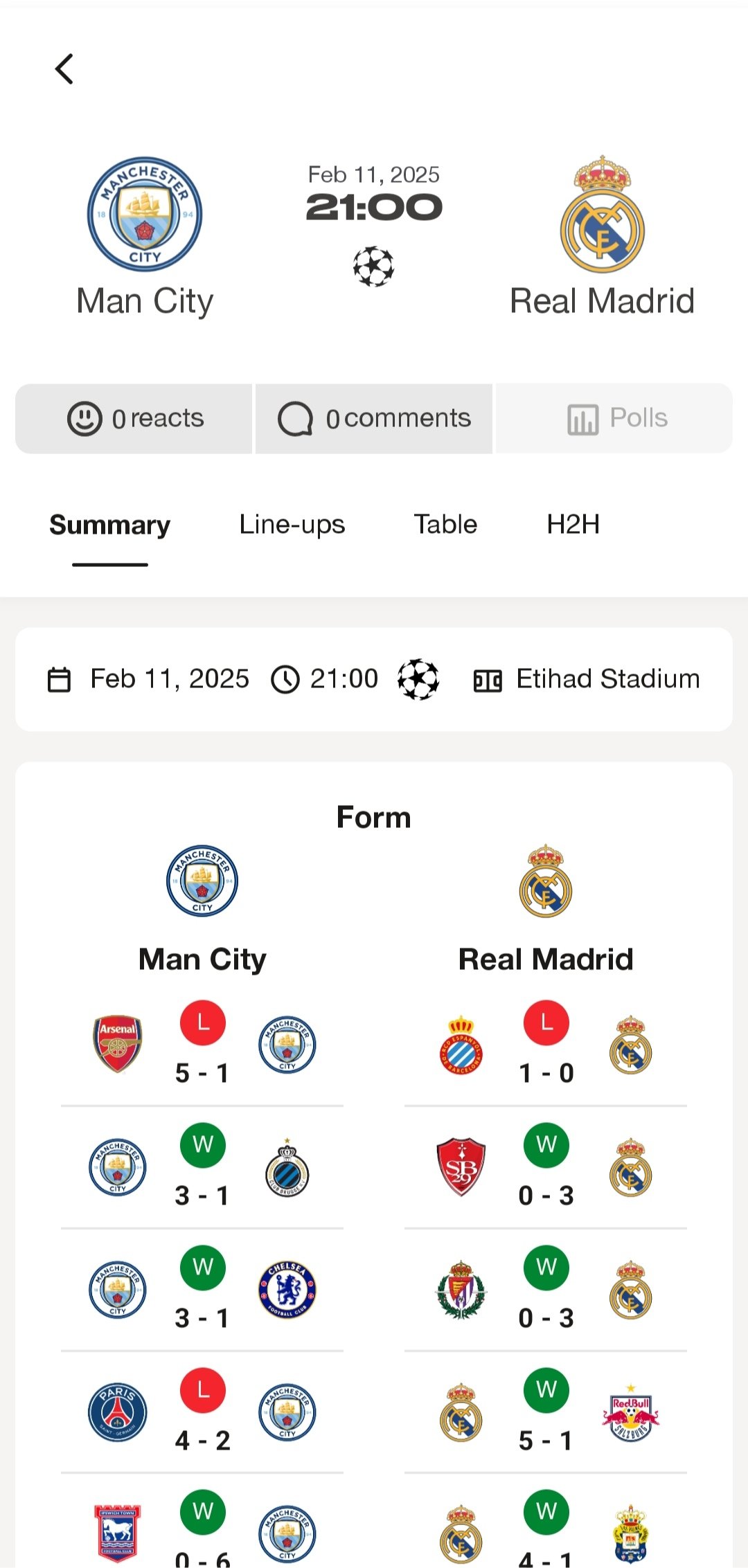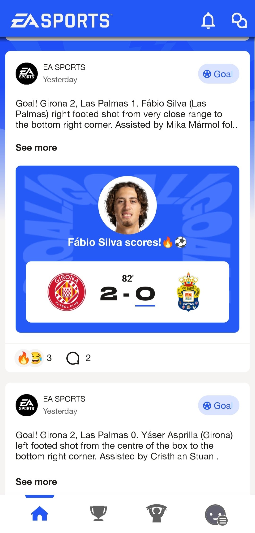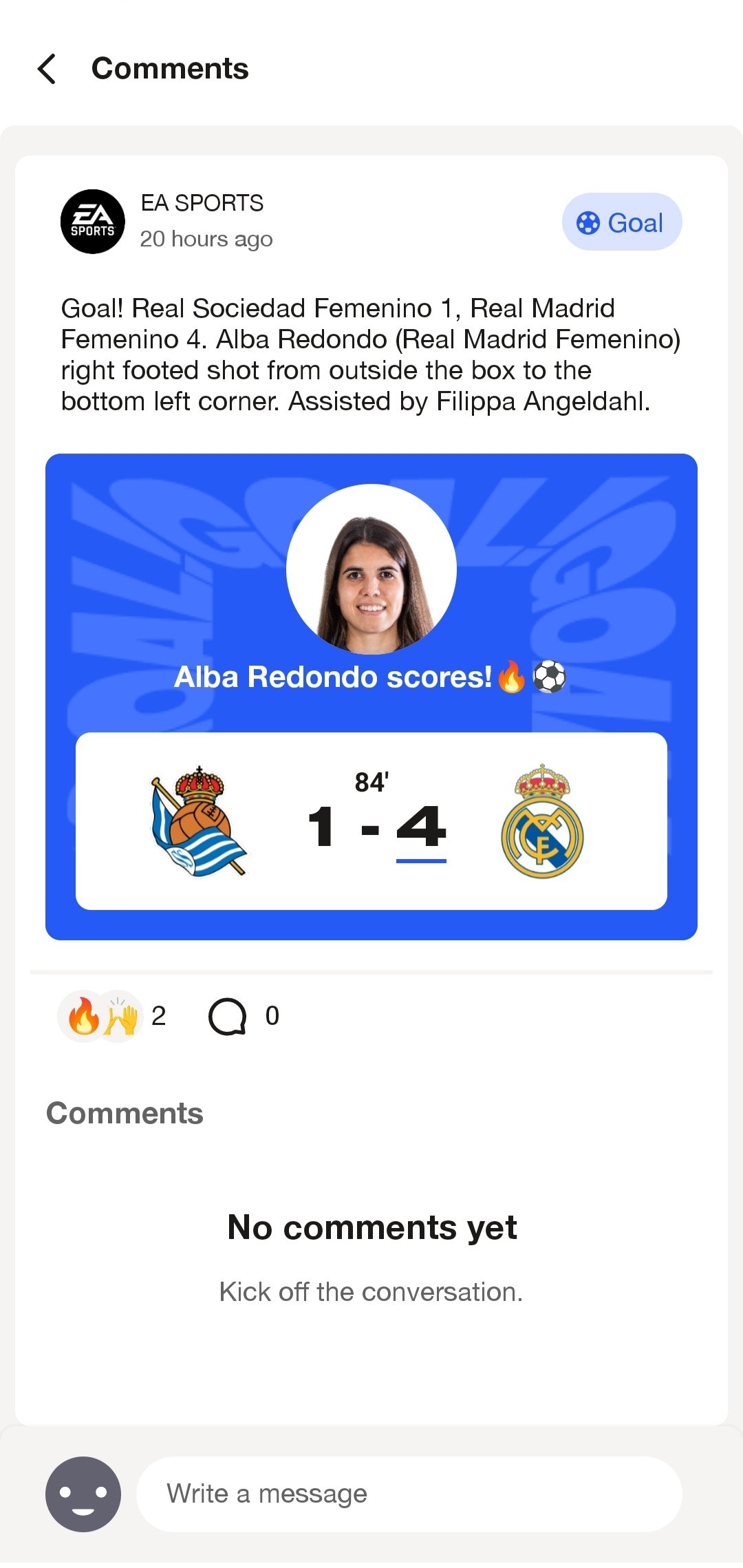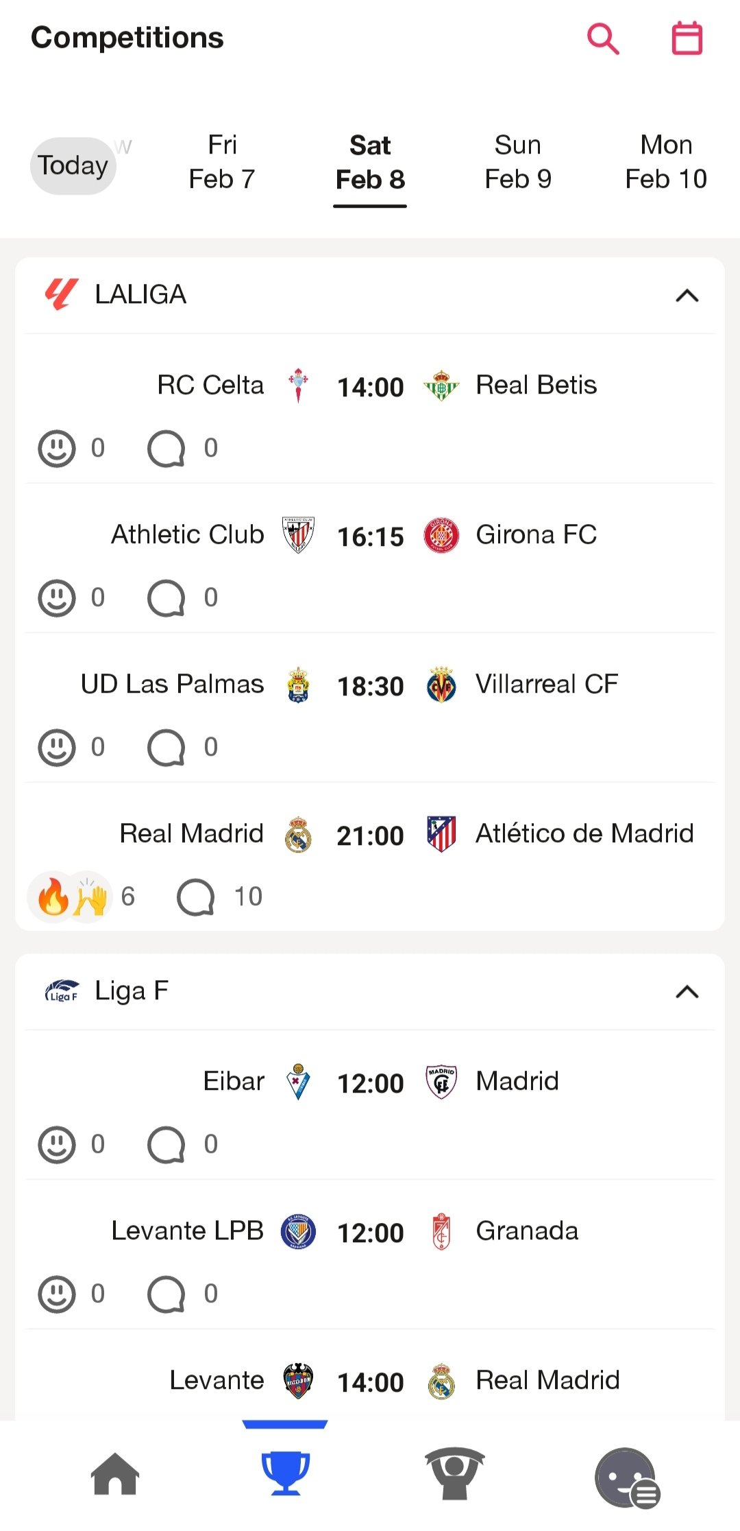 It is also possible to react and comment on any post of a goal or match, apart from adding other users to chat with them. All as if it were a social network.