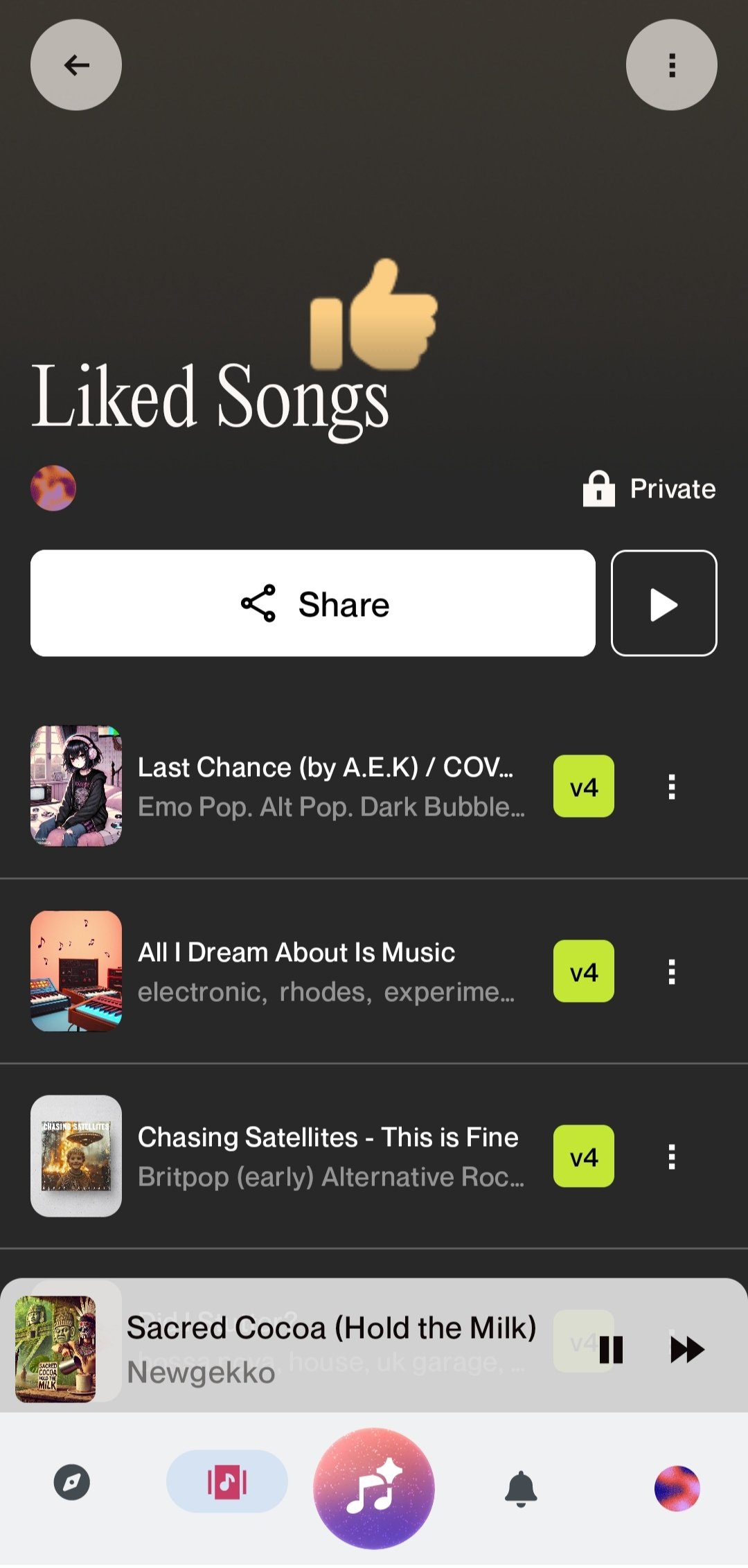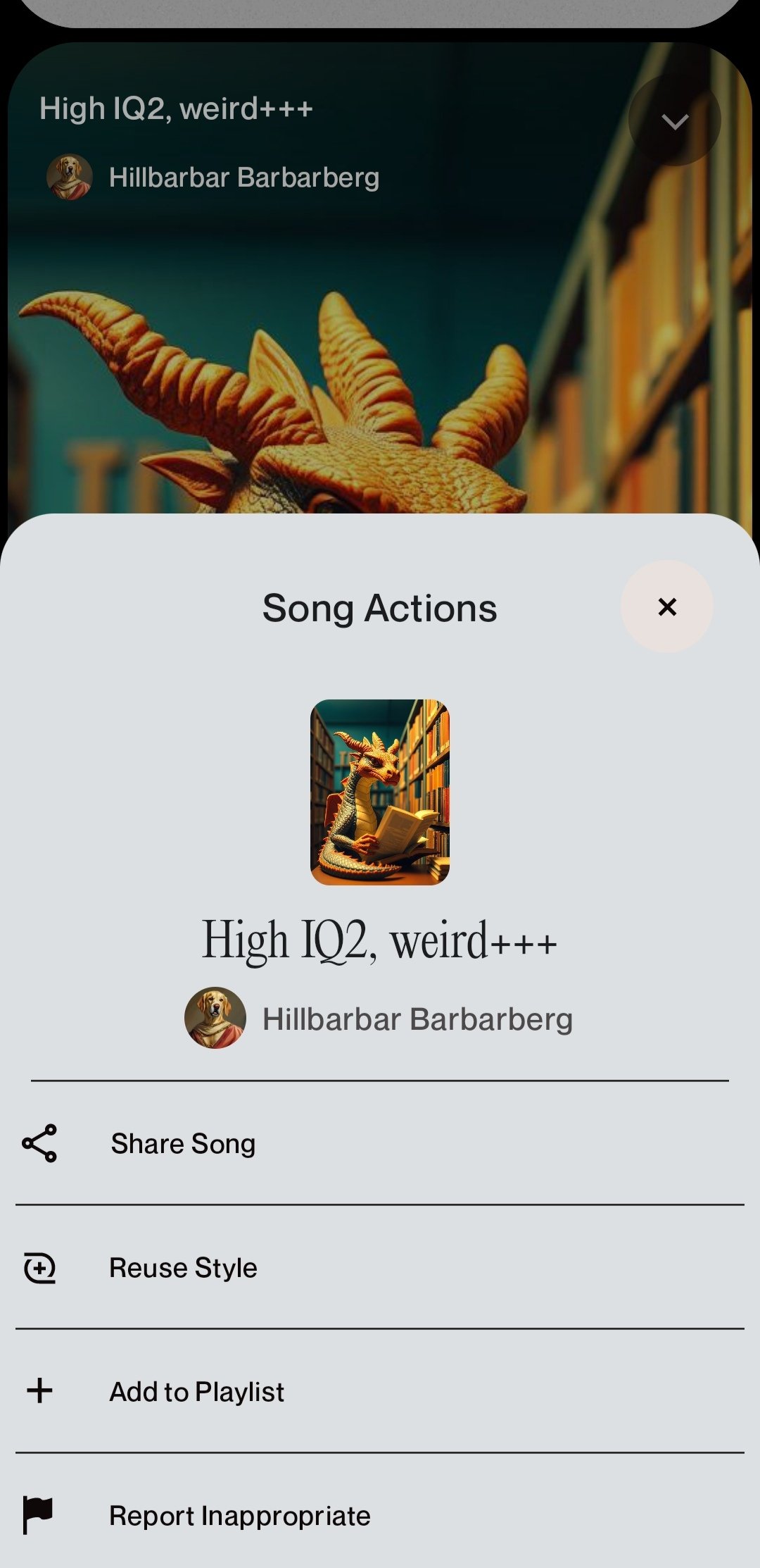Moreover, you can do more than just listen to songs, you can rename or remaster them, make them public or private, report them for poor quality, or delete them.