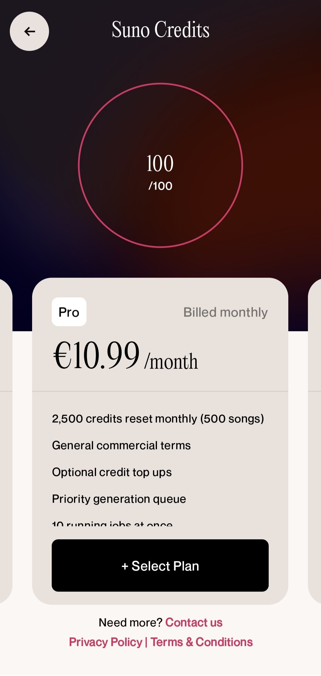 When you download Suno AI for free, you get a basic plan for free that lets you create 20 songs on the first day. After that, only 50 credits are renewed daily. You must subscribe and pay a monthly or yearly fee to receive more credits and benefits.