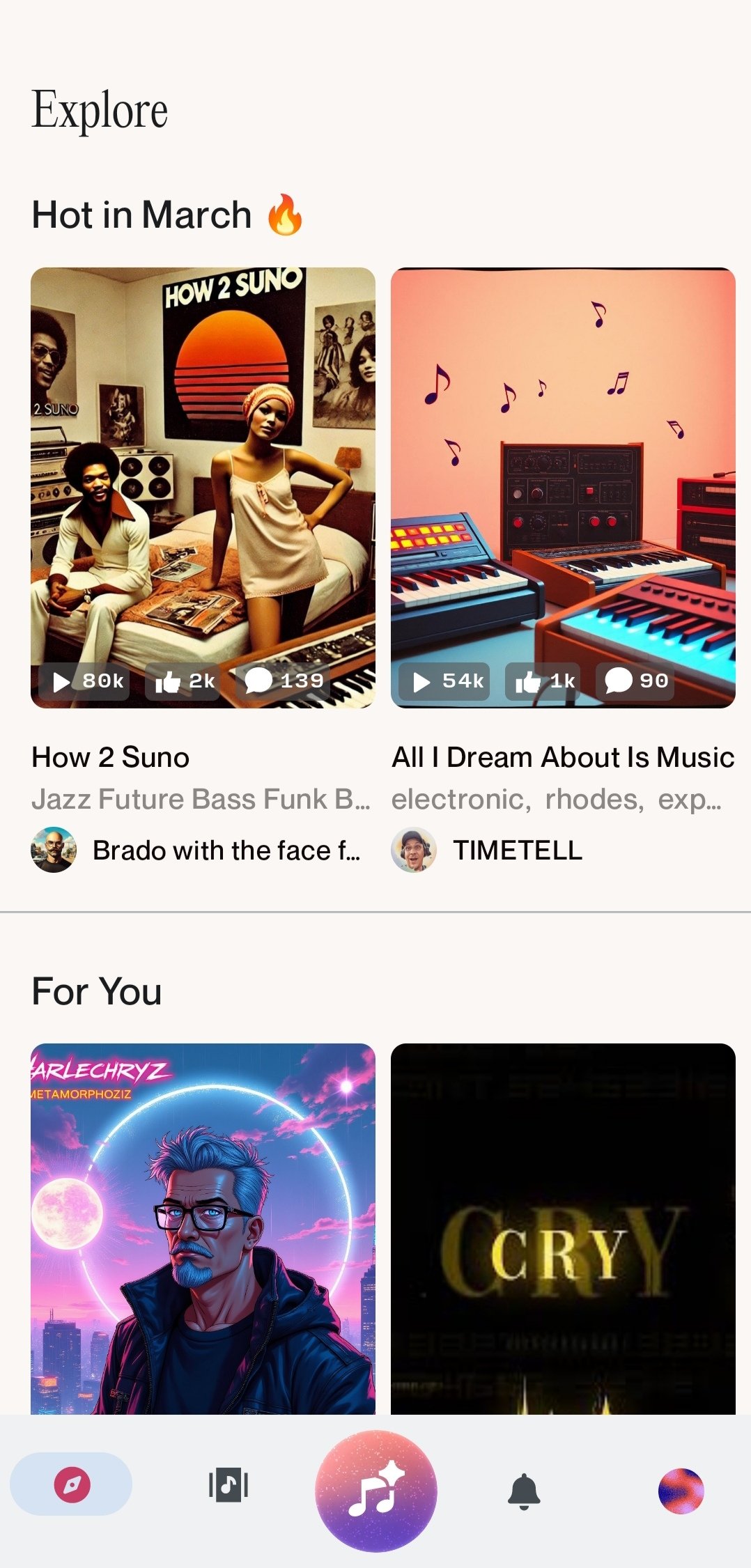 The Suno AI app lets you easily create any song after specifying the lyrics and genre or a short description. You can also listen to other users' songs