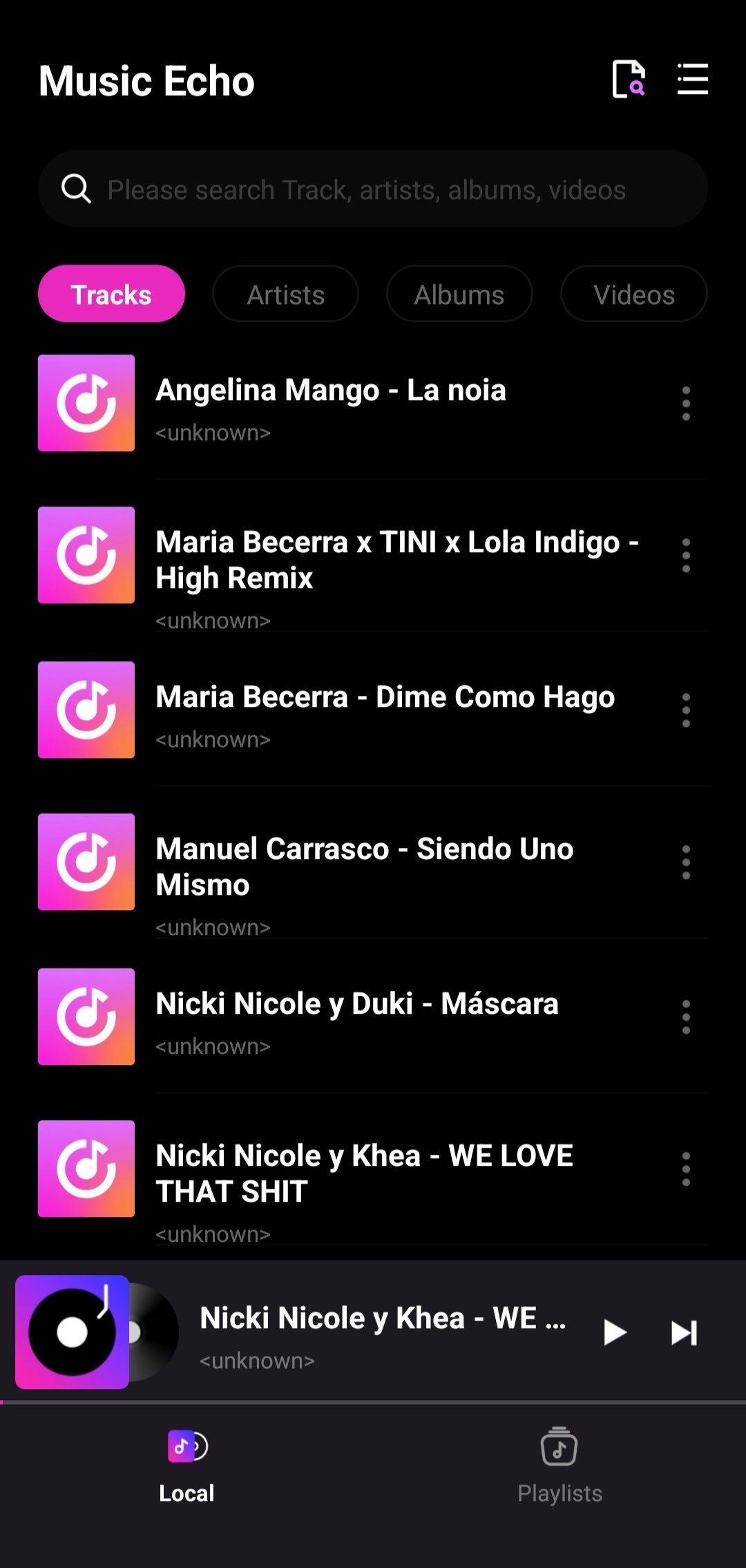 Music Echo automatically imports the songs and videos we have on our mobile device so that we can play them. It allows us to create music playlists