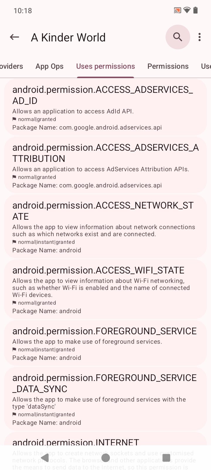View advanced app information, including permissions and activity.