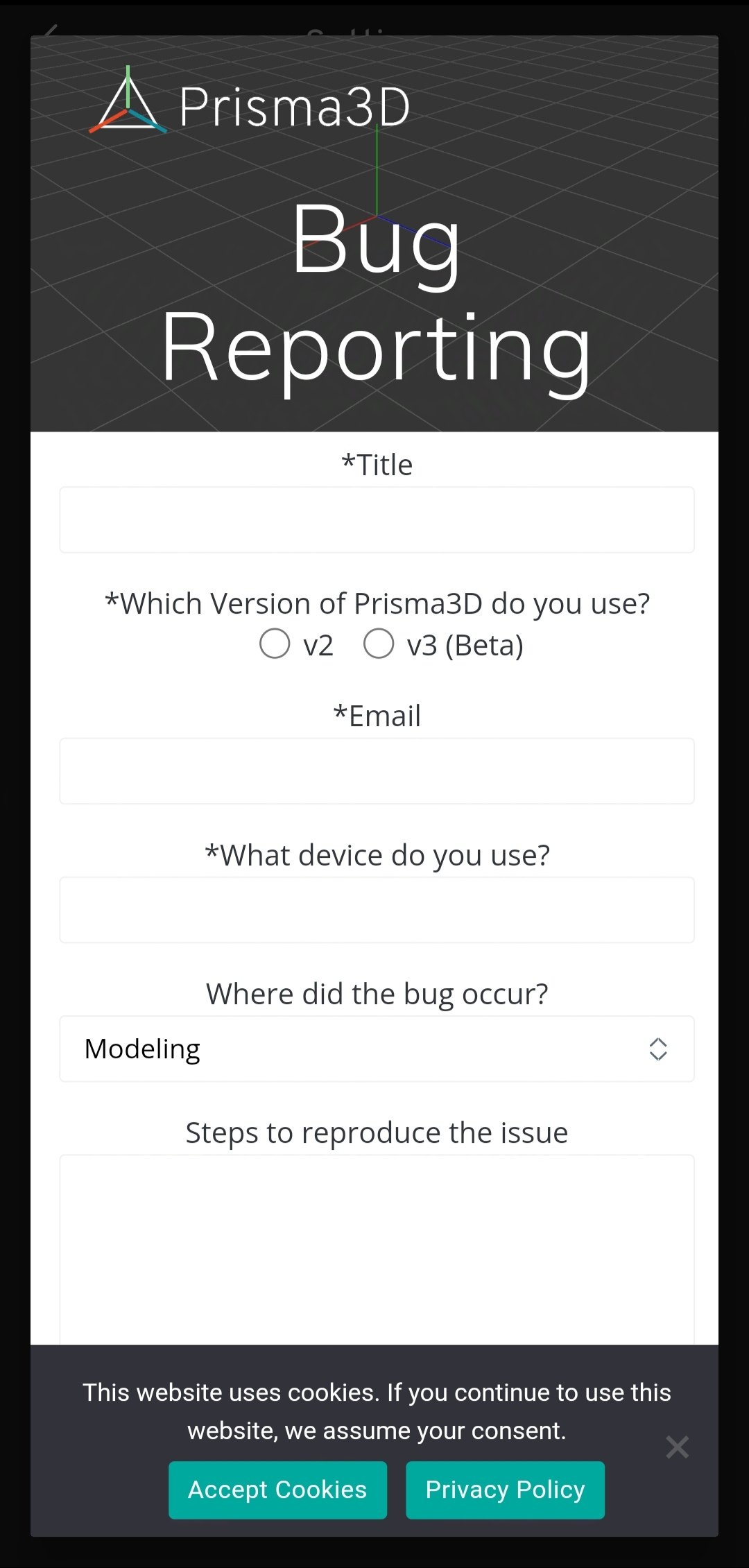 In addition, if after you download Prisma3D Android for free you experience any error or problem during its use, you can report it in the bug report. The form allows you to explain your expectation and the result you find, as well as attach screenshots.