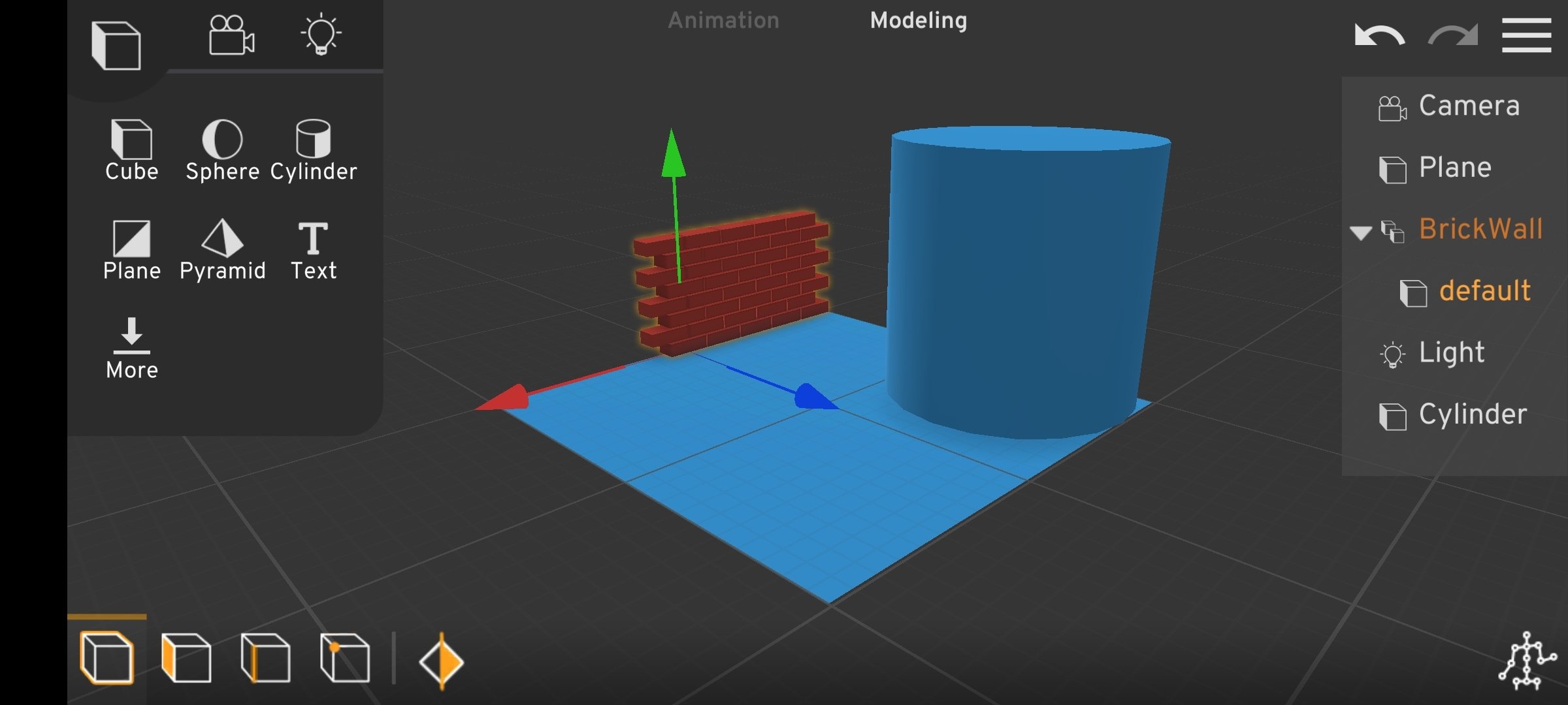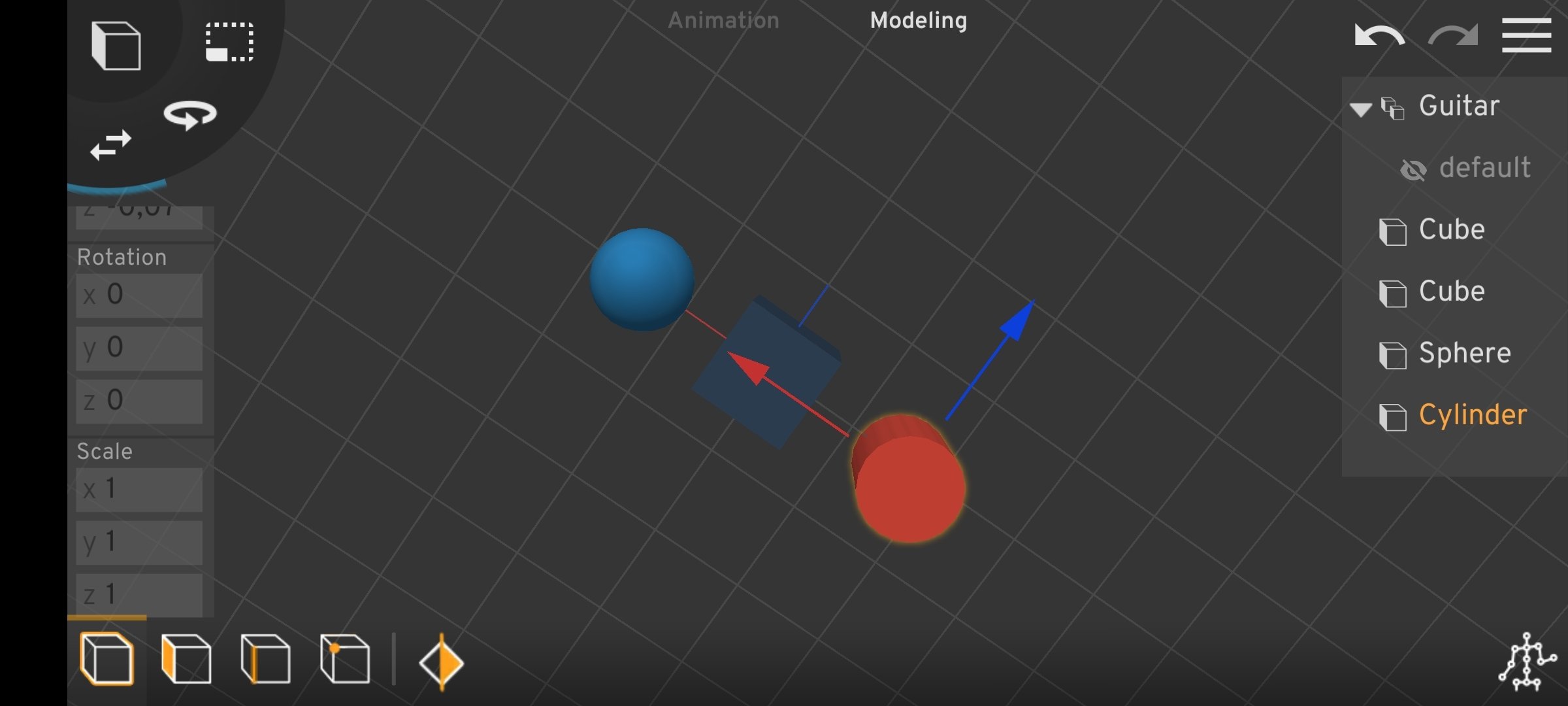 Change the color, texture, and reflections of the shapes, as well as their position, rotation, and scale. The latter, either with touch gestures or by typing the specific numbers.