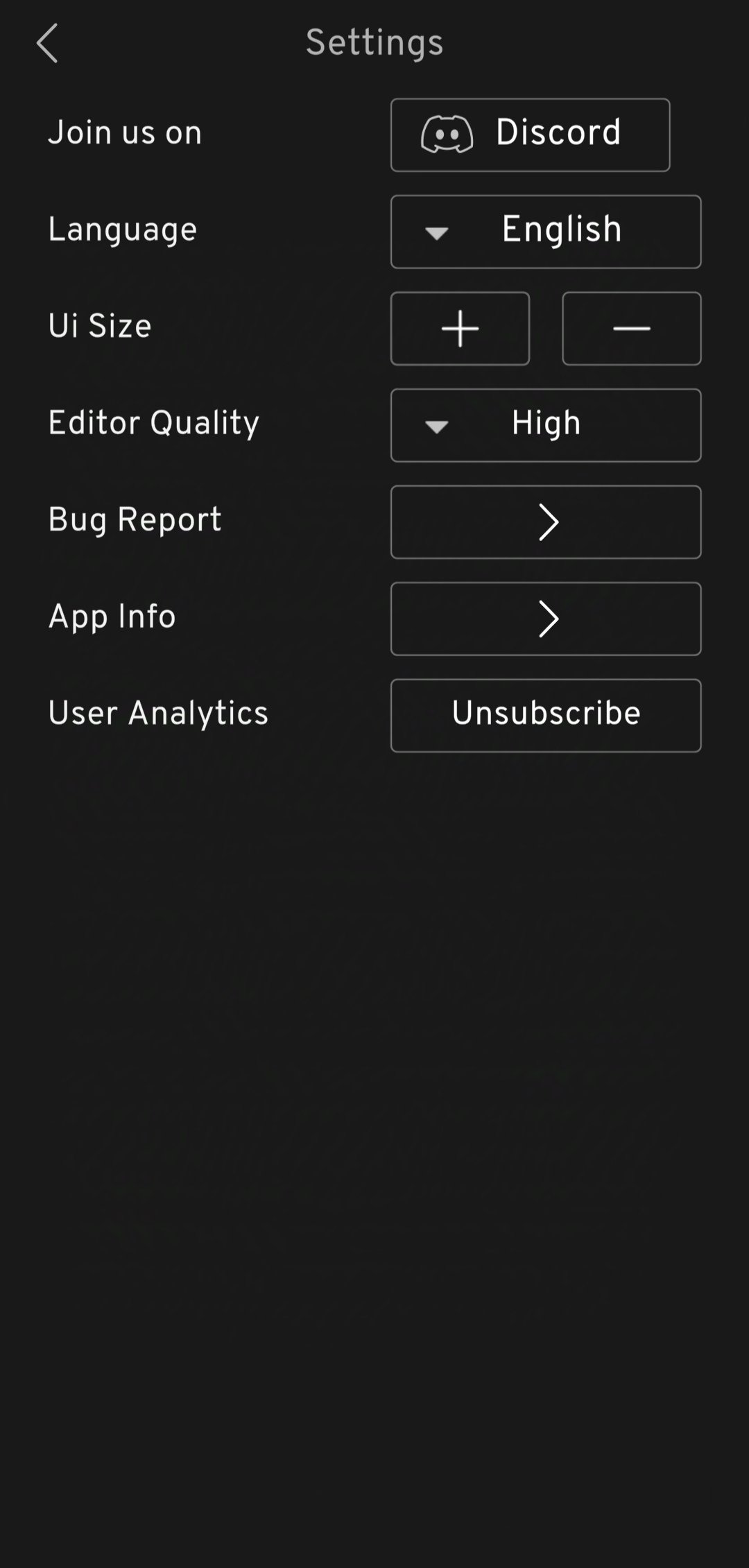 In the settings we can modify the size of the user interface, choose between low, automatic or high quality and register with our Discord account.