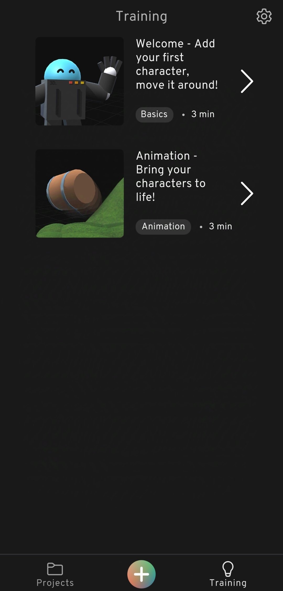 You can unleash all your creativity with the aforementioned resources, before saving, rendering and/or exporting. It is also possible to import a file that you already have on your device to edit it. At first, there's the training option, with a little guide to using the basic features.