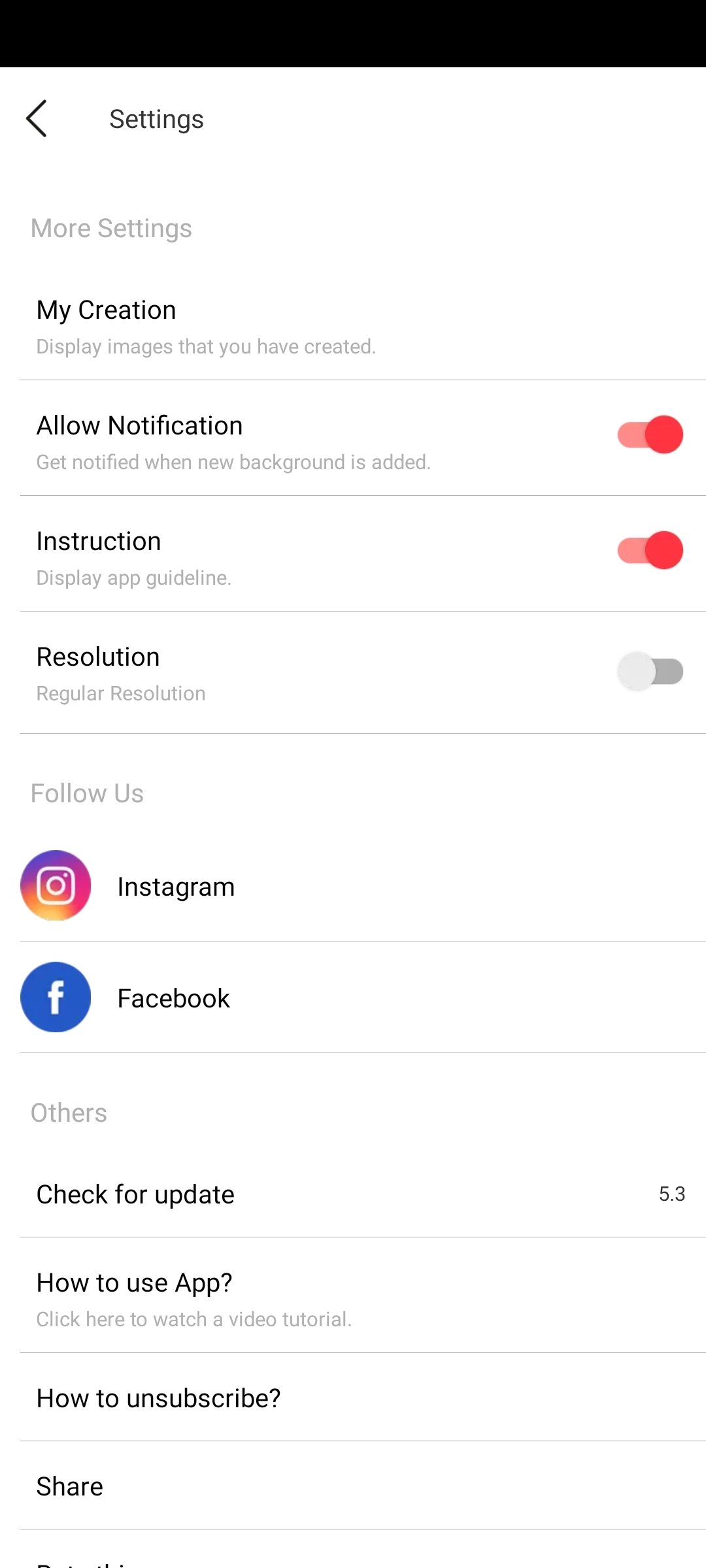 In the My Creation section, within the app's settings, we find our edited images. In addition, we can change the resolution to be regular or high.