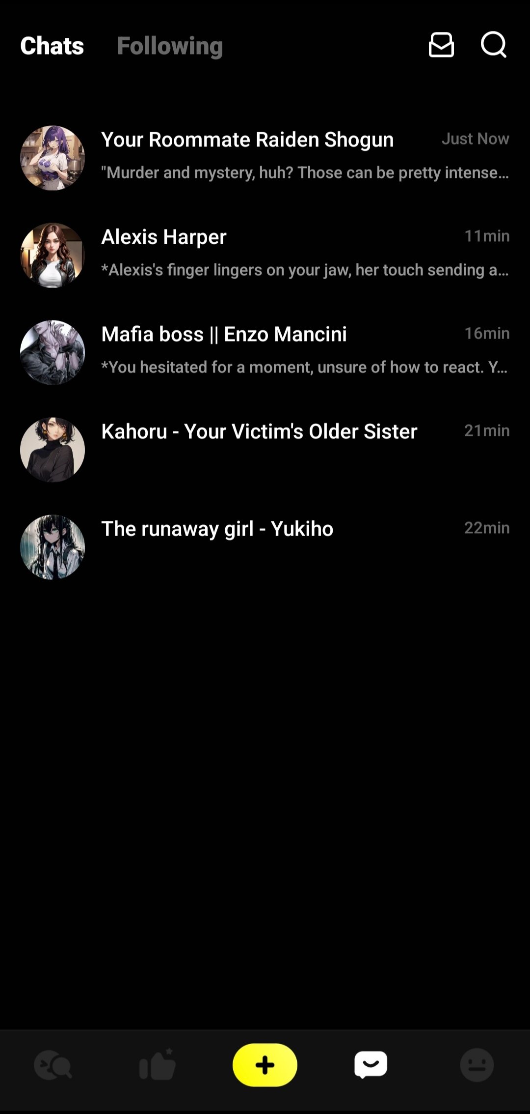 In Emochi, you experience adventures by chatting with AI characters who respond in unpredictable and exciting ways, and you can also create new ones
