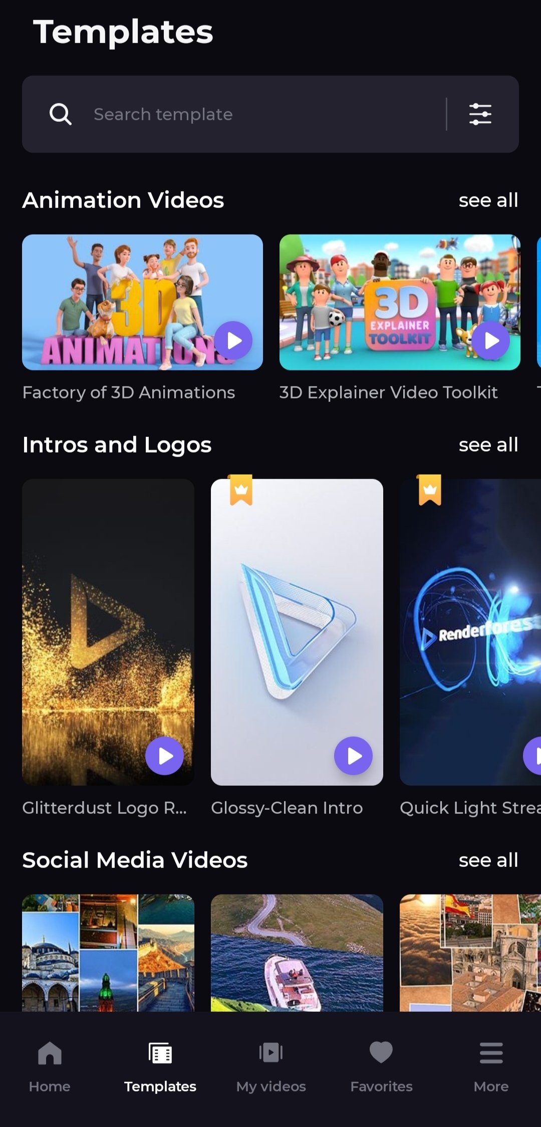 To have the premium features after you download Renderforest Android for free, you can subscribe to its weekly, monthly or annual plan. It provides access to all the templates, the unlimited duration of the videos and other extra tools in the web version it has.