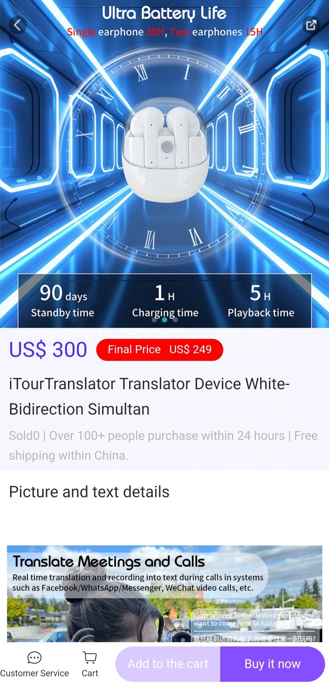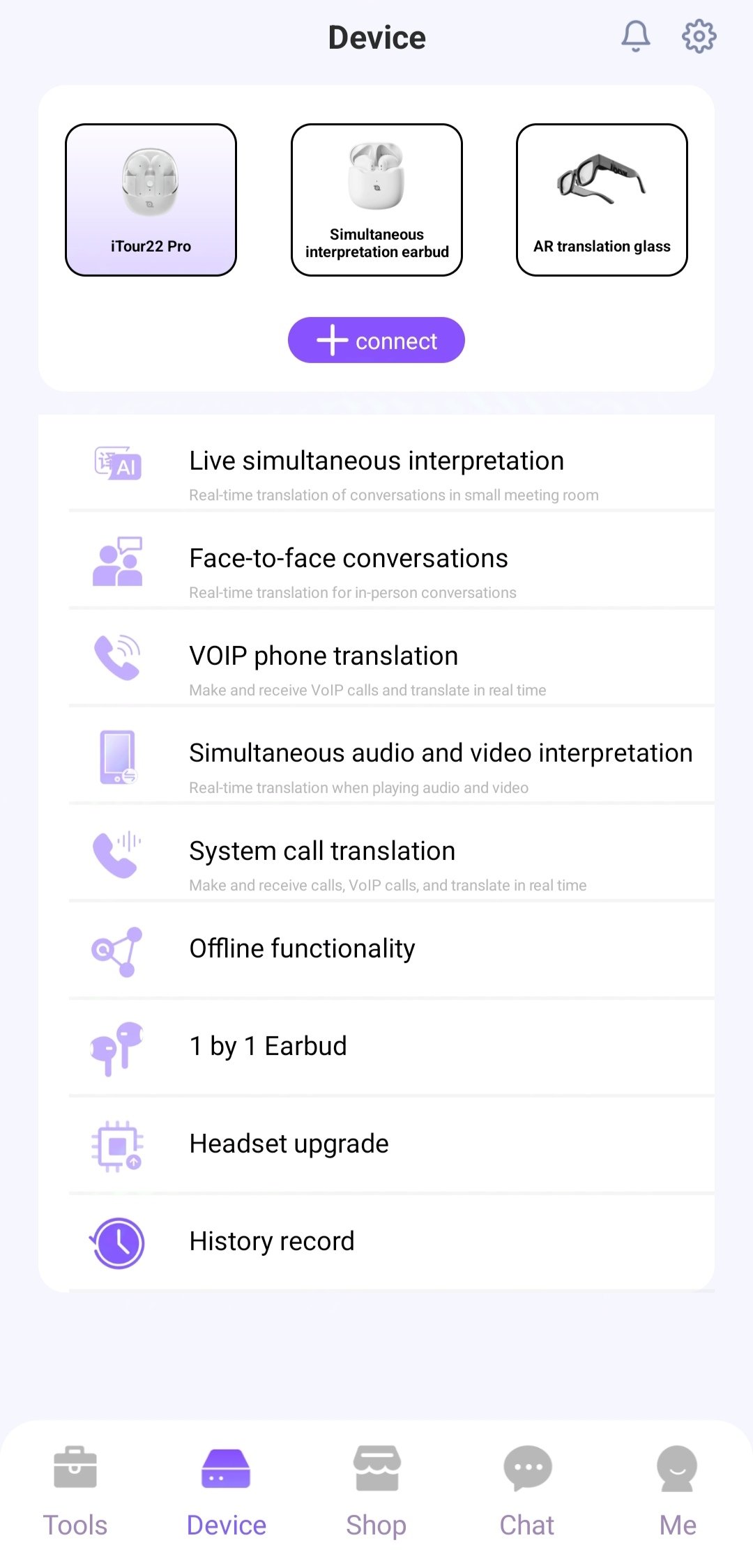 The app also offers the possibility to purchase wireless headphones for two-way and simultaneous translating, along with other exclusive features.