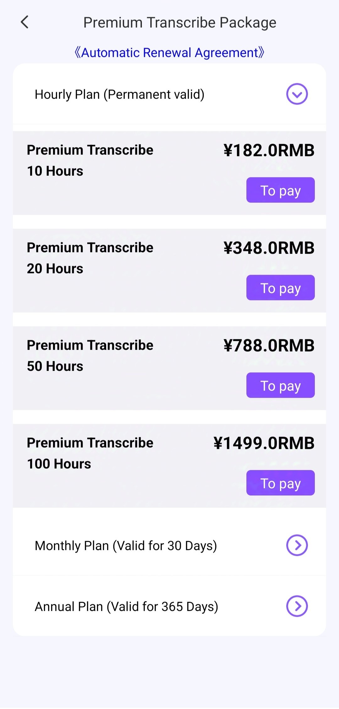 Other alternatives are VIP packages, in which we purchase from 10 to 100 hours of use or pay for a monthy or annual plan. These are the best options if we intend to use the translator quite a lot, for whatever purpose.