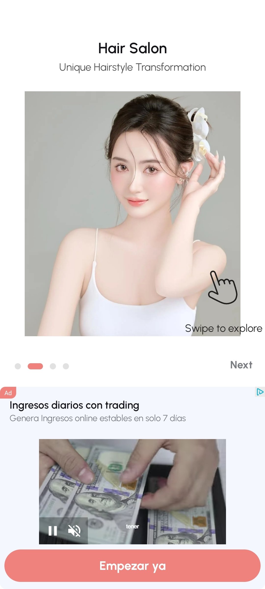 The fourth function to be found in Perfectme APK enables us to experiment with new hairstyles for women. We have different colors and hairstyles available to us in order to change hair in any photo. It just takes a few seconds and it's ready.