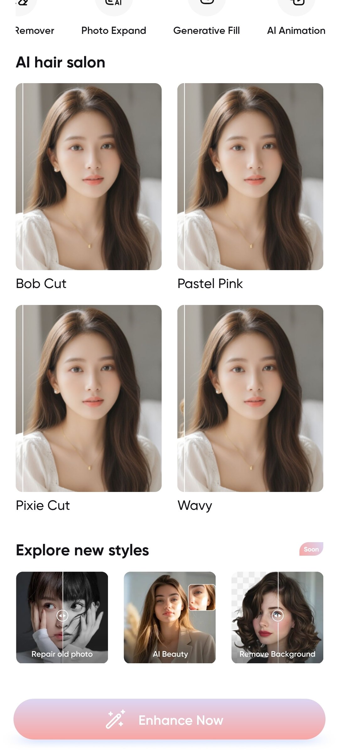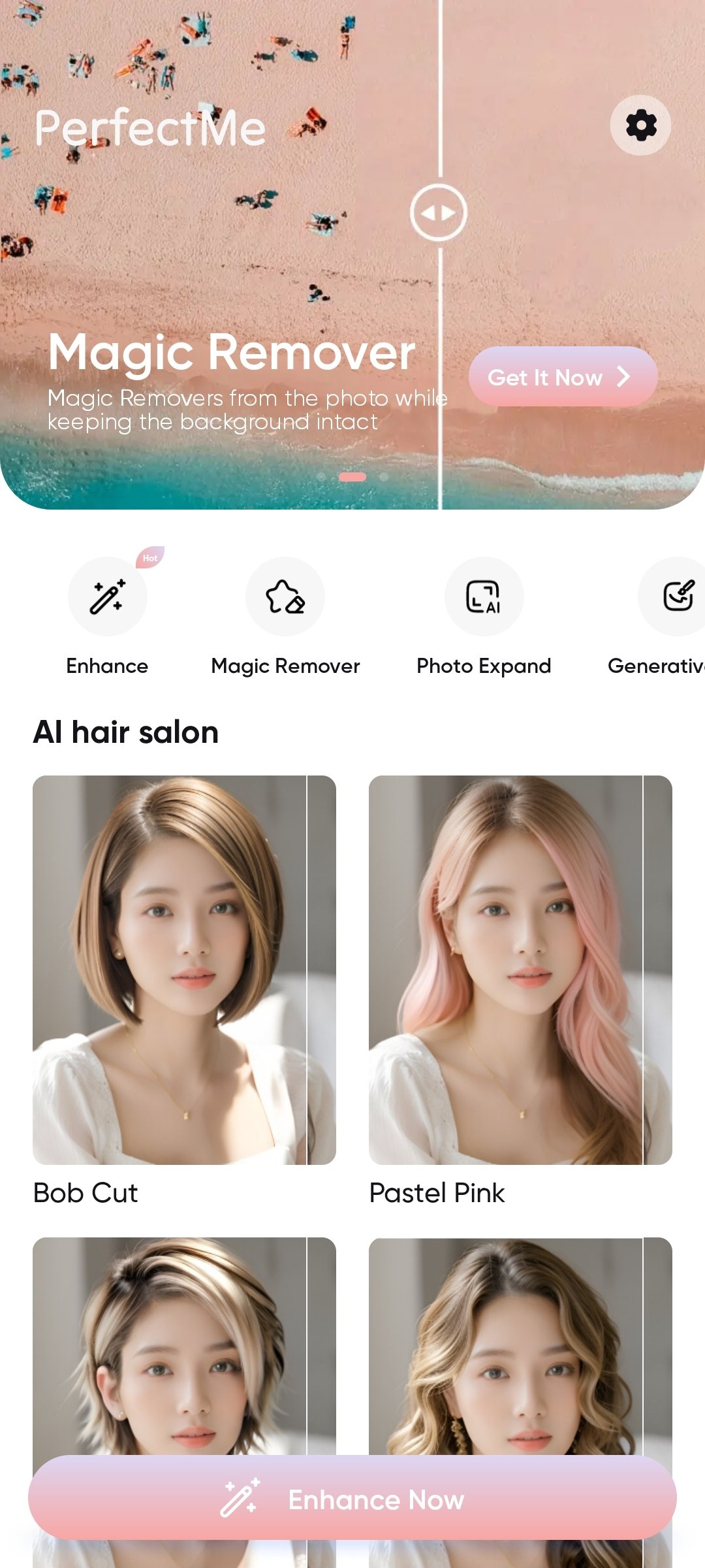Perfectme features four artificial intelligence functions that allow us to enhance images, expand backgrounds, remove clutter and change hairstyles
