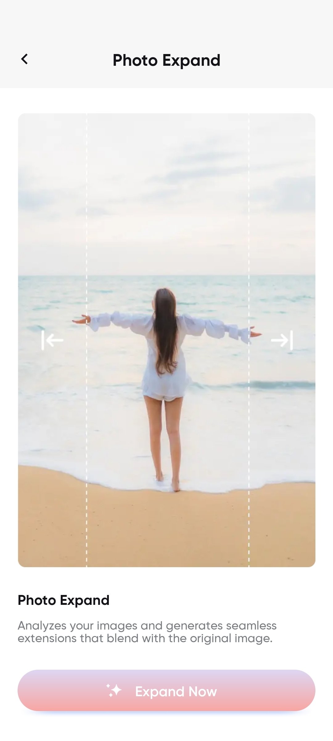 Extending the background of the selected image, while getting the expansion to blend and integrate smoothly and seamlessly. Beforehand, we get the chance to choose a specific aspect ratio.