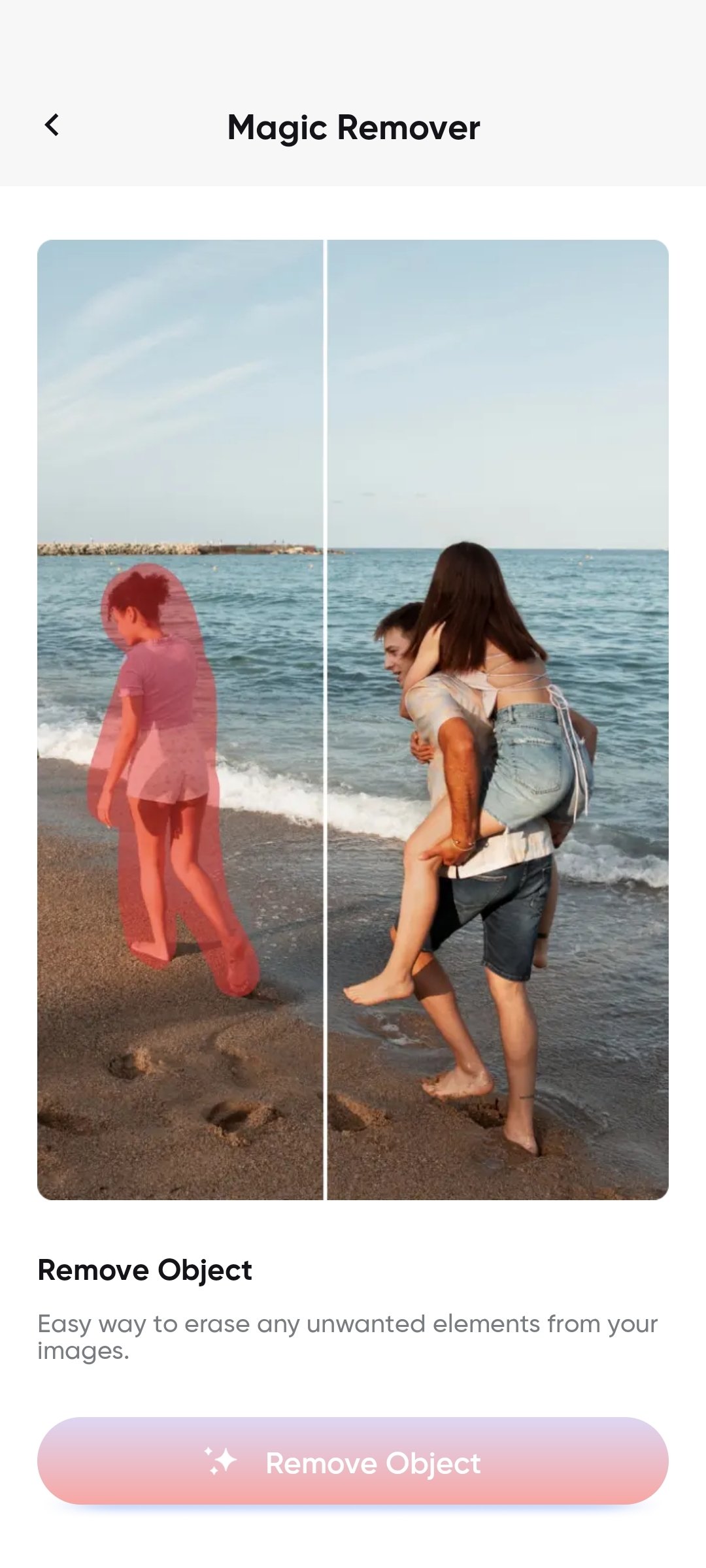 Erasing elements that we don't want to appear because we don't like them, they distract, spoil poses, etc. It detects them automatically and we can choose which to remove without leaving a trace.