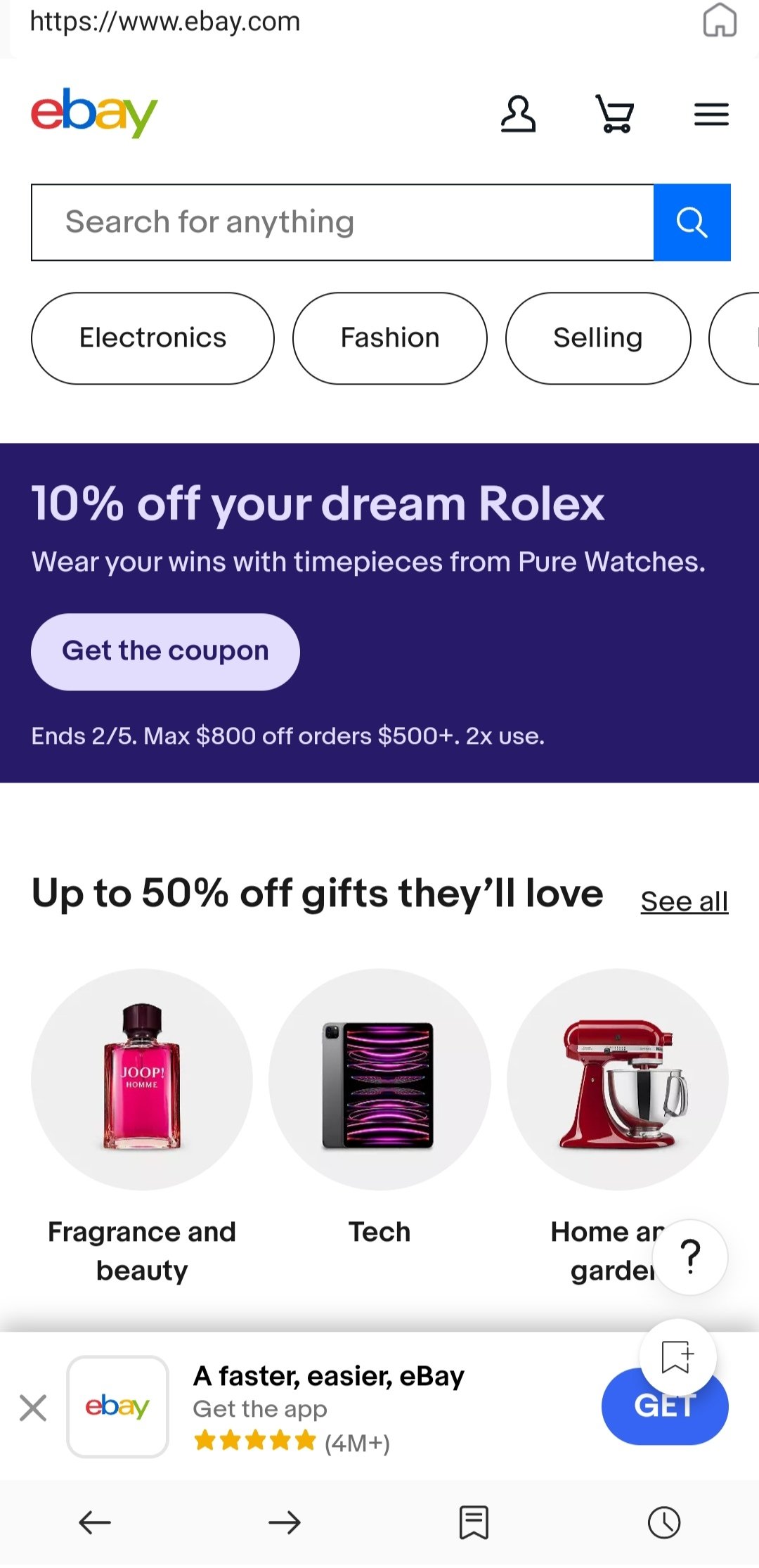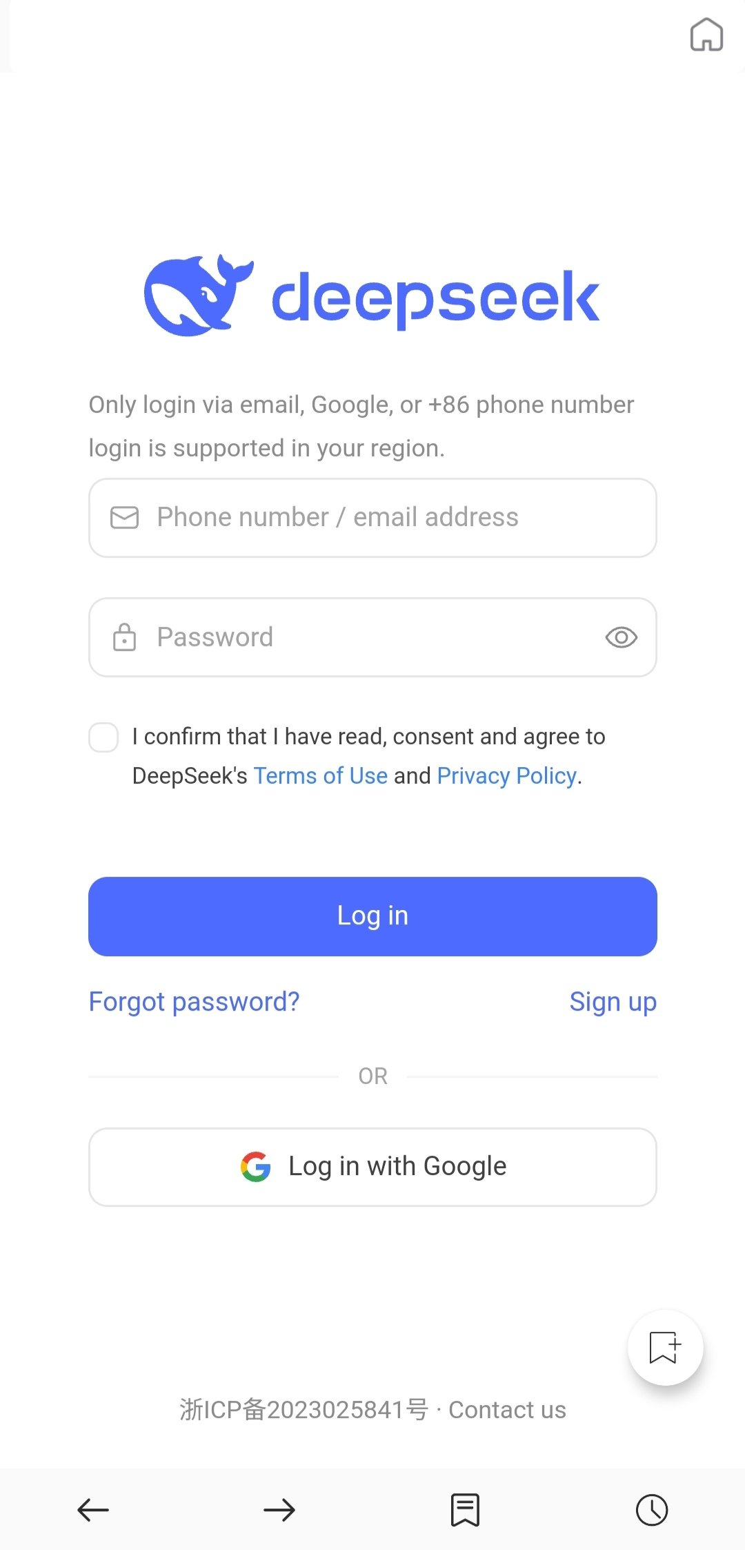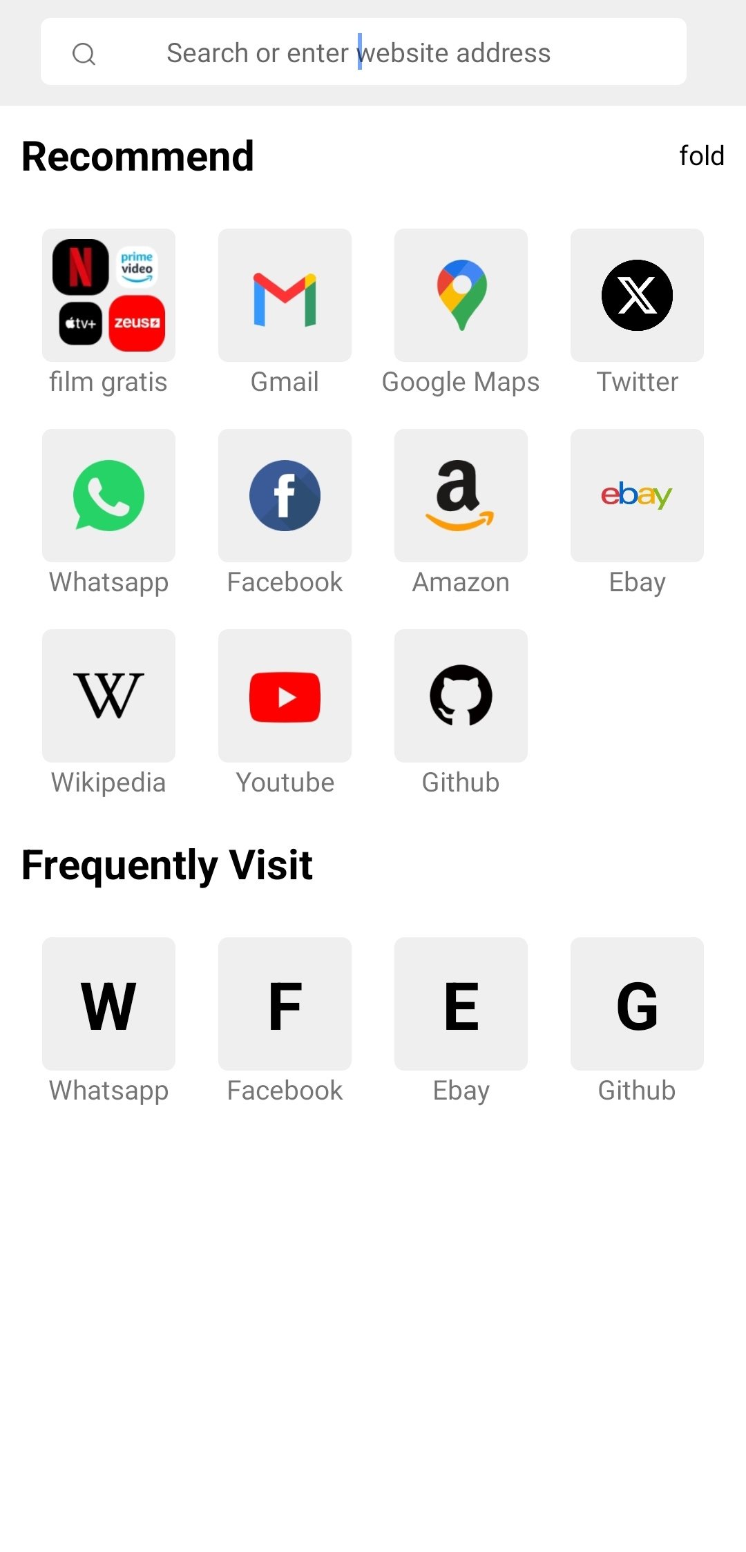 When we open it, we find the familiar Google search bar at the top and several tabs for accessing popular resources. Such as Whatsapp, Ebay, Facebook, Gmail, Wikipedia, etc. Next, once inside a website, we find five buttons for: